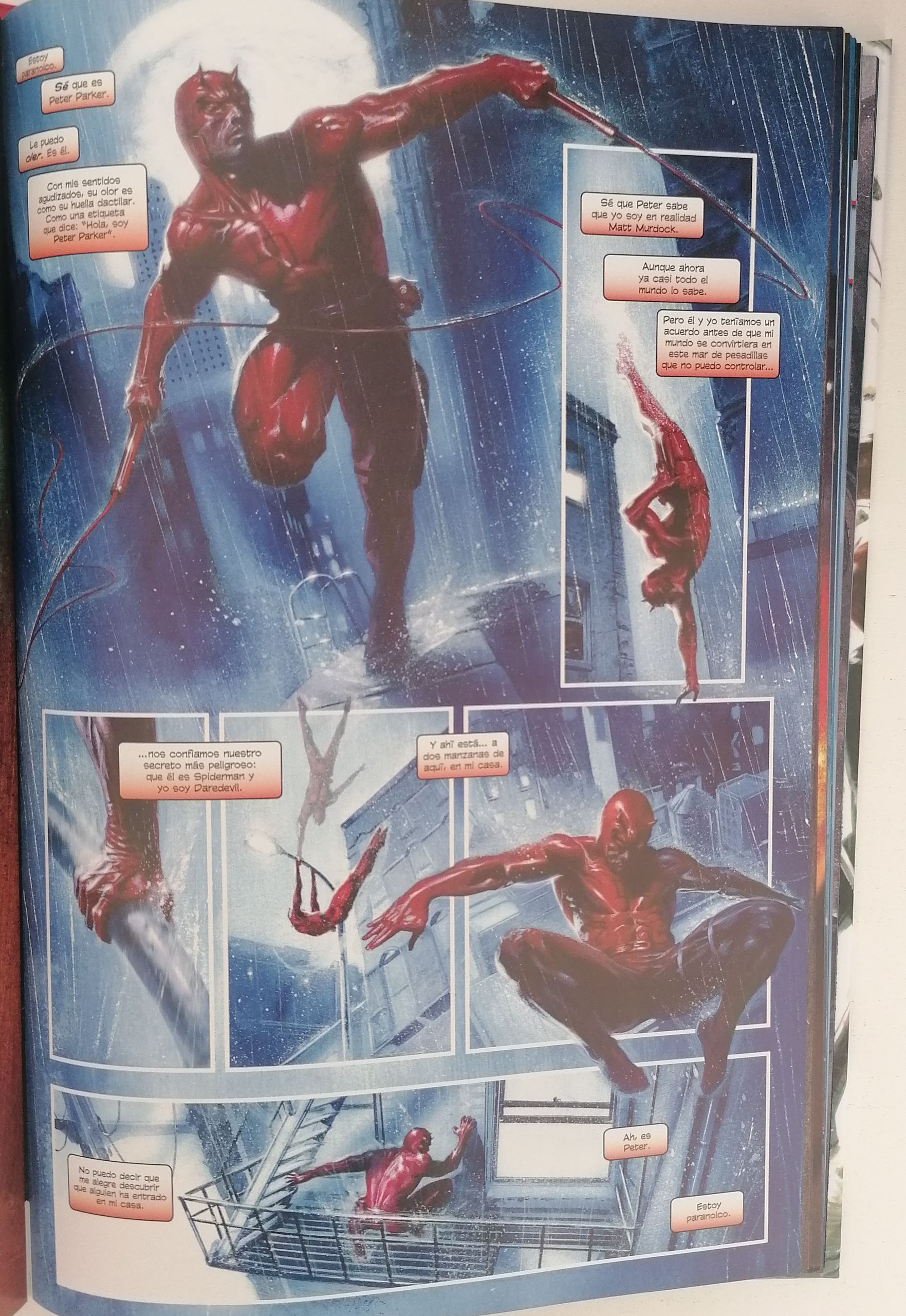 En cuanto al dibujo, Gabriell DellOtto y su estilo realista y fotográfico terminan de rematar la faena de manera sobresaliente. No solo te quedarás con la boca abierta en las batallas en formato ‘splash page’ sino que el ambiente oscuro, lluvioso y lúgubre del dibujo y color se fusionan a la perfección con el tono del guion. Daredevil corriendo por los edificios en plena tormenta, las reuniones de Nick Furia con los altos cargos del país ocultos bajo las sombras, los flashbacks de los personajes sobre una misión que no recuerdan, los escenarios de Nueva York y Latveria... una delicia para los amantes del dibujo.