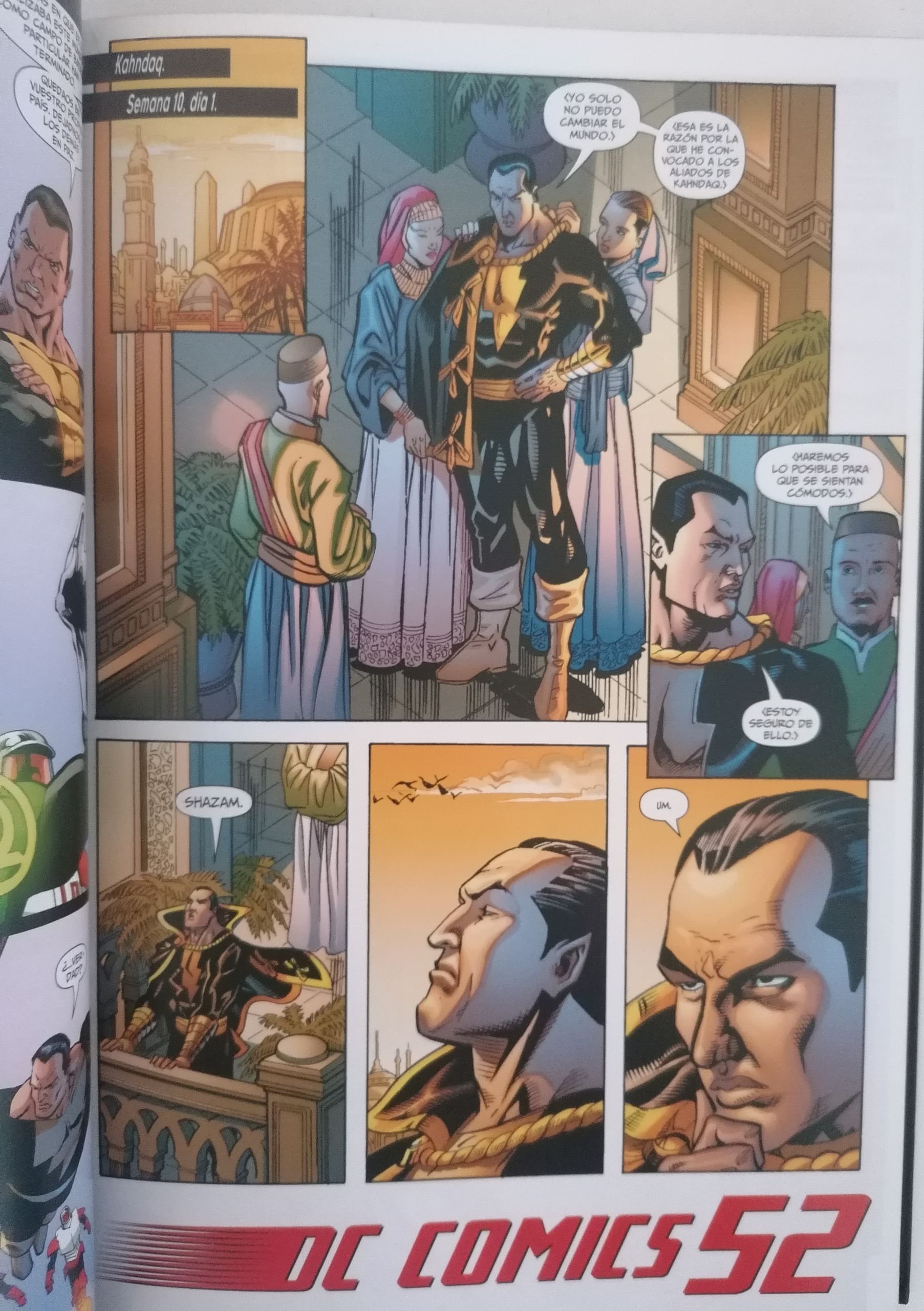 Antes de nada, contexto. Lo que nos encontramos aquí es una obra que está situada dentro del evento denominada por DC como 52. En el mismo, superhéroes míticos como Batman, Superman y Wonder Woman ya no están y son las denominadas estrellas secundarias, por así decirlo, las encargadas de vigilar el mundo en su ausencia. Por lo tanto, tendremos una serie de historias de diferentes personajes que están inmersas en este contexto. En este cómic de Black Adam lo que encontraremos serán las historias que corresponden única y exclusivamente al dueño y señor de Kahndaq.