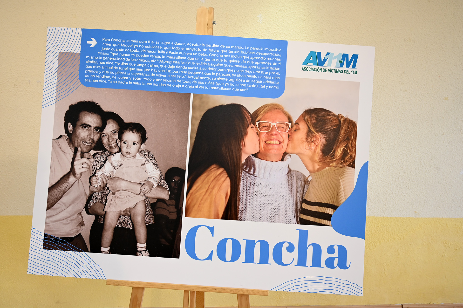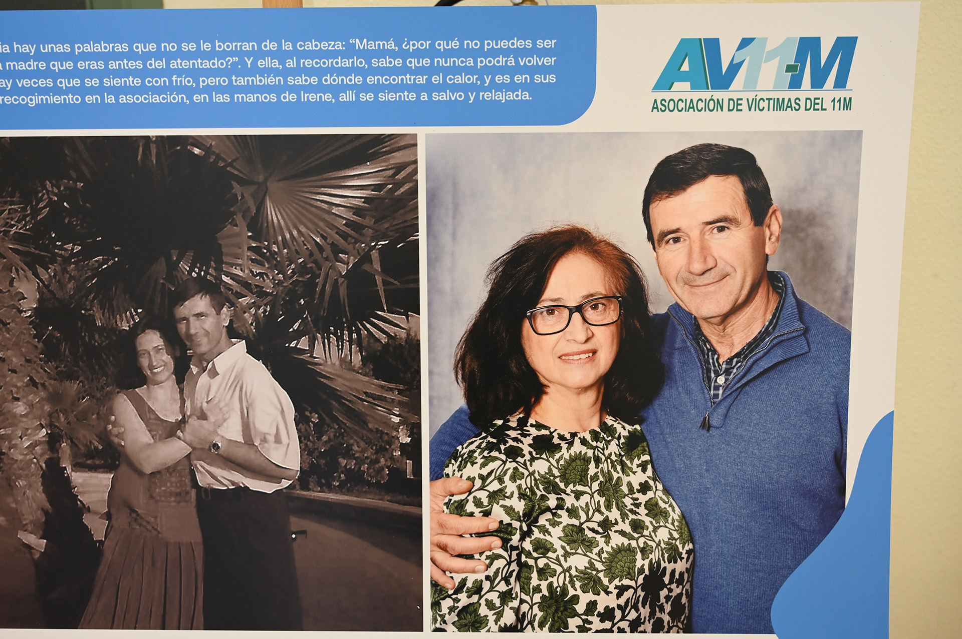 A cargo de la Asociación de Víctimas del 11-M la exposición cuenta con un montaje, en el que se exponen fotos de los supervivientes de antes del atentado y una foto de ellos y ellas mismas después.