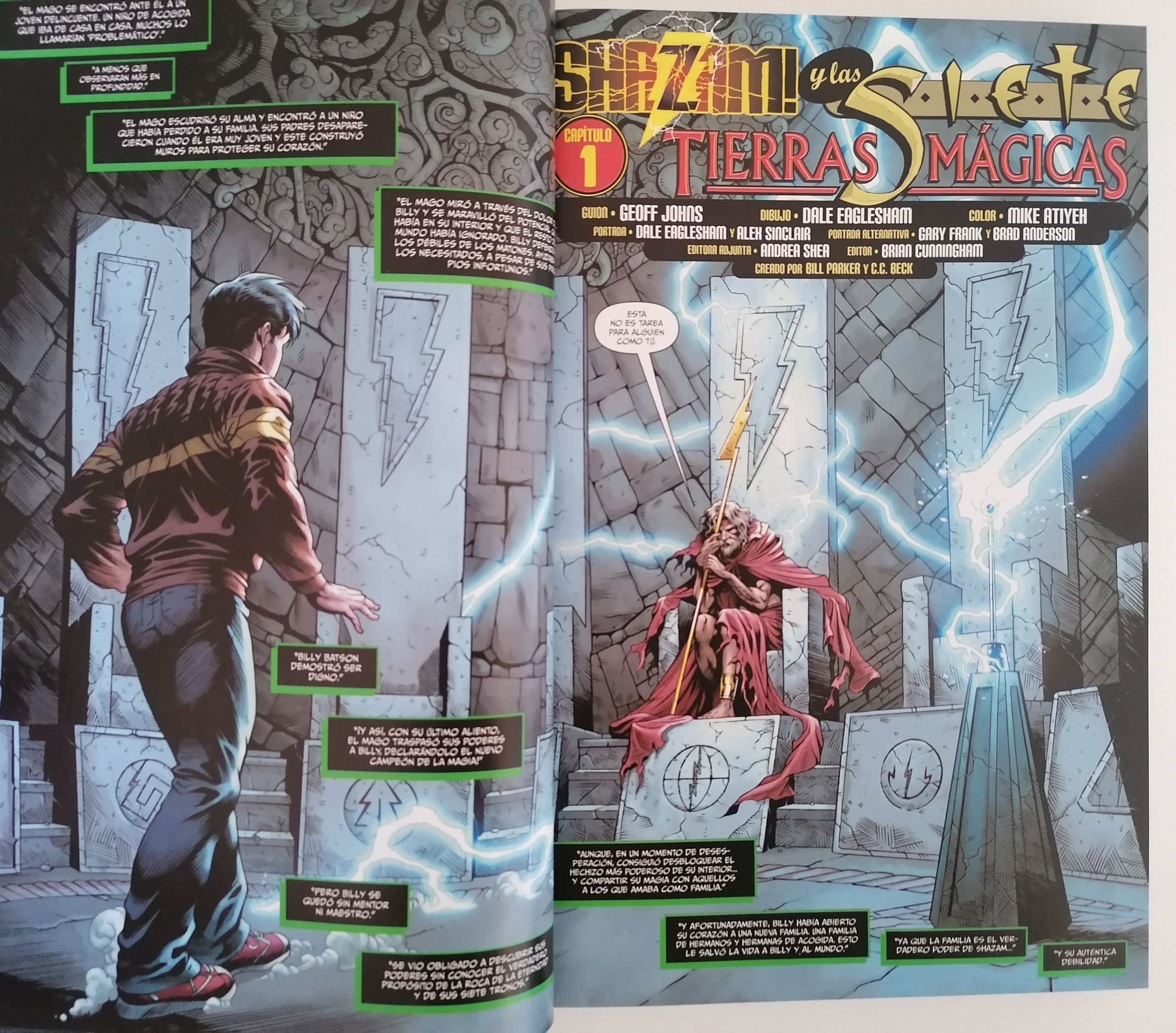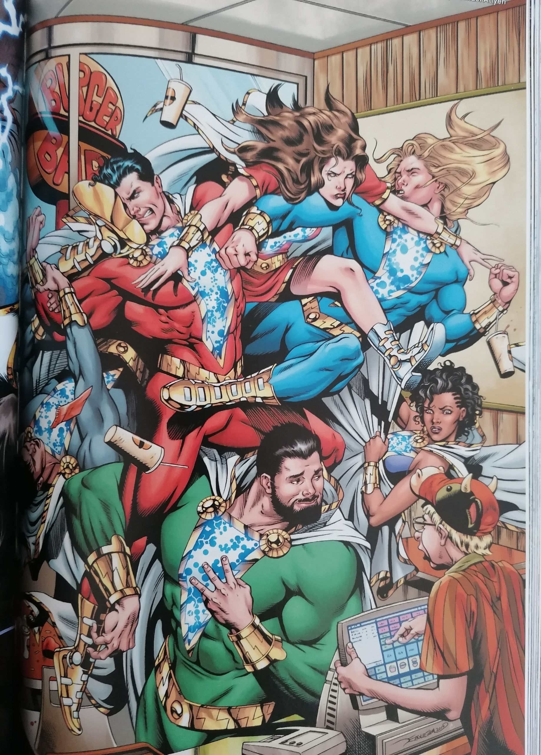 Antes de seguir con la reseña, vamos con el apartado técnico: guion de Geoff Johns, dibujo de Scott Kolins, Dale Eaglesham, Marco Santucci, Max Raynor, Mayo "Sen" Naito, cartoné tapa dura, editorial ECC, contiene Shazam! núms, 1-11, 13-14 USA, 344 páginas y un precio de 36,50 euros.