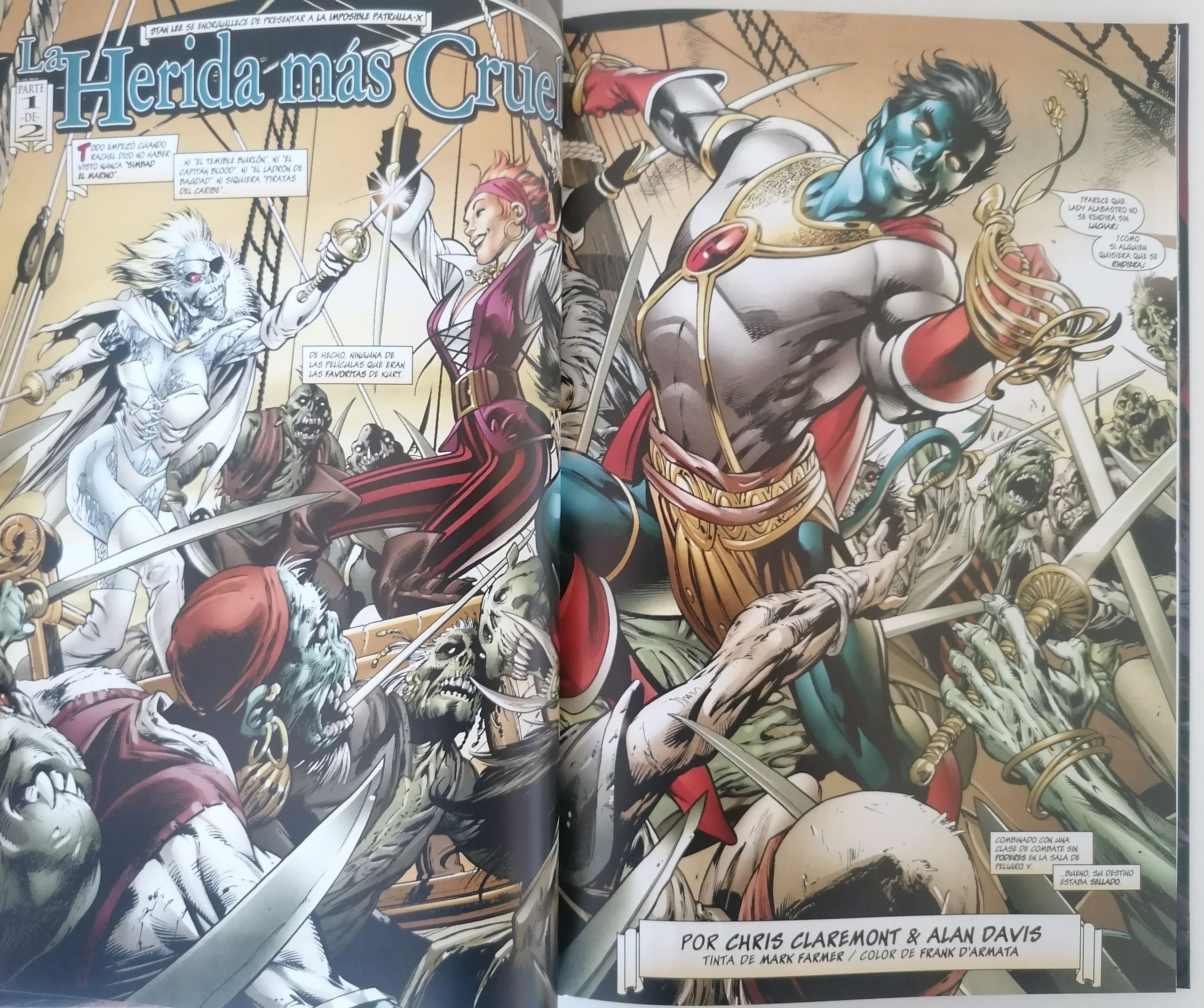 En esa primera parte, dibujada por Alan Davis, Claremont desarrolla un guion en el que nos adentraremos en el mundo de la noche y en todos los peligros que este esconde. También veremos buenas escenas de lucha, un inicio espectacular con Rachel y el Rondador Nocturno en pleno mundo de piratas y con cierto tono a historia de amor que se avecina entre ambos. Algo que, ojo, también se insinúa con Logan y Tormenta, aunque de forma muy velada. El arranque es bueno, sirve de introducción para X-23 y todo desemboca en el inicio de la segunda fase del cómic en el que Emma Frost gana protagonismo como Reina Blanca y su pasado dentro del Club del Fuego Infernal. De todo lo que hay en el cómic, esta historia es para mí la más interesante. No solo porque está más elaborada que la inicial sino porque el tono, la narrativa y el dibujo son muy interesantes en todos los sentidos. Misterio, posibles traiciones, enfrentamientos entre amigos y enemigos, un combate de Lobezno con el malo de turno que está lleno de fuerza y contundencia... es sin duda la parte más interesante del tomo.