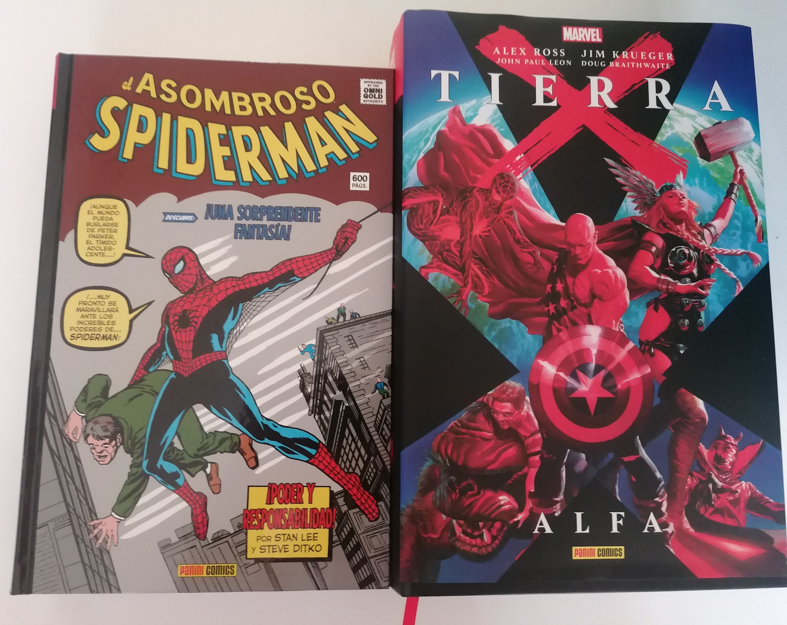 Ante todos ustedes, el formato Omnibus de Panini. En este sección, entre otras, hemos traído ediciones y formatos como los Must Have, la Biblioteca Marvel, la rústica, las grapas, los Marvel Deluxe y también los Marvel Gold. Cada uno de ellos tiene sus características, pero por tamaño y contundencia, los Marvel Gold son lo más parecido a este Omnibus que hoy os traemos aquí. ¿Cuál es la diferencia? Que los Marvel Gold son una recopilación de 400, 500 o 600 páginas de los clásicos de los sesenta y setenta mientras que los Omnibus son recopilaciones más atemporales. Tierra X, por ejemplo, es una obra de finales de los 90 y en este ‘tocho’ de 1304 páginas, Panini nos trae la primera parte de esta gigantesca distopía de Alex Ross que nos hizo ver cómo sería el futuro de todo el universo Marvel.