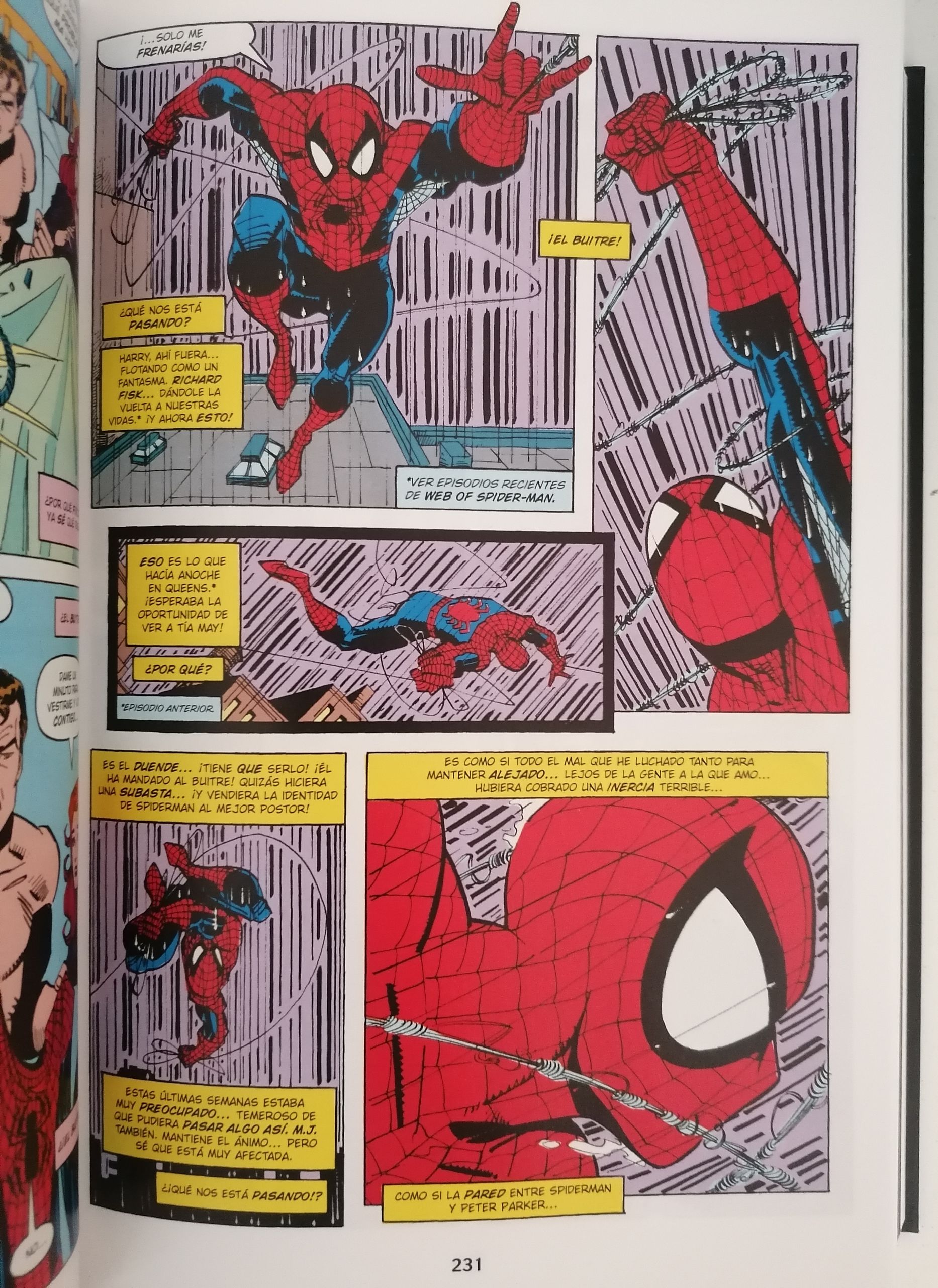 Conclusión: mantengo lo dicho al inicio y sitúo esta etapa como una de las mejores y más psicológicas del personaje. La explosión definitiva del nuevo Duende Verde de Harry Osborn y el papel de Alimaña es lo más destacado de un recopilatorio que llevó al límite mental a Peter Parker. El dibujo de Buscema es espectacular y sin perder el lógico toque clásico que tiene, el conjunto ha envejecido de manera sobresaliente. La edición por otro lado incluye varios extras y muchísima documentación sobre la etapa y sus autores. Si gustan disfruten de la lectura.
