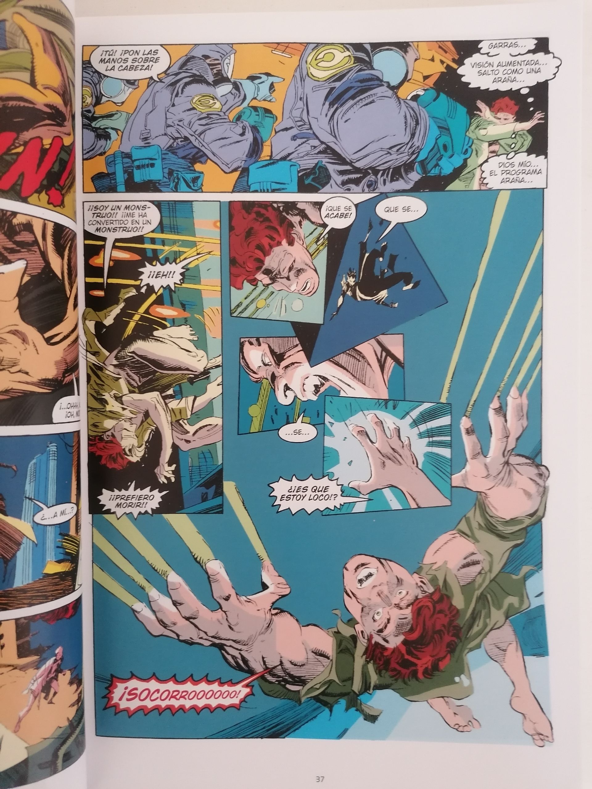 En cuanto al dibujo, se lo pueden imaginar, Estética futurista, coches voladores, experimentos, un Spiderman oscuro y agresivo... Hay varios artistas en este tomo, pero me centro en el principal, que es Rick Leonardi. Rick ‘me pongo a tus pies’ Leonardi. Las imágenes valen más que 1000 palabras. Espectaculares. Os dejo varias: