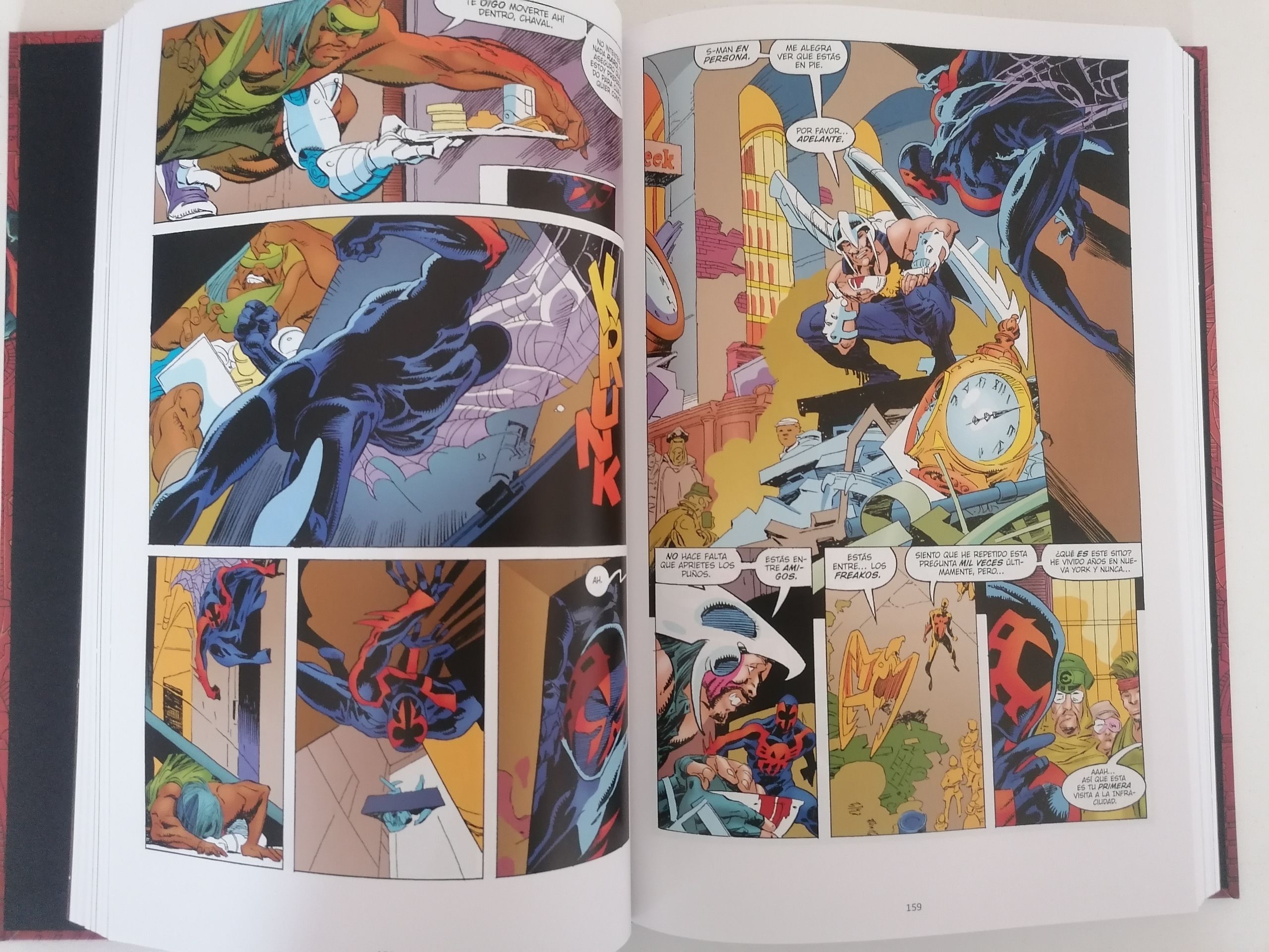 ¿Lado negativo de este Spiderman 2099? Quizá que no es una obra para entrar directamente en el Spiderverso. Es un producto conveniente para aquellos que ya tienen un buen bagaje con Peter Parker o incluso con Miles Morales, aunque la película ha hecho que a día de hoy eso no sea un condicionante importante. Puedes no haber leído un cómic en tu vida y que tu experiencia venga del cine. Con eso te podría valer. Además los 90 no son tan demandantes a nivel de lectura como los clásicos de los 80 hacia atrás que sí tenían mucho texto y eran más lentos y densos en narrativas. Se lee con facilidad aunque en este primer tomo la historia es más una introducción que un guion redondo con una historia autoconclusiva.