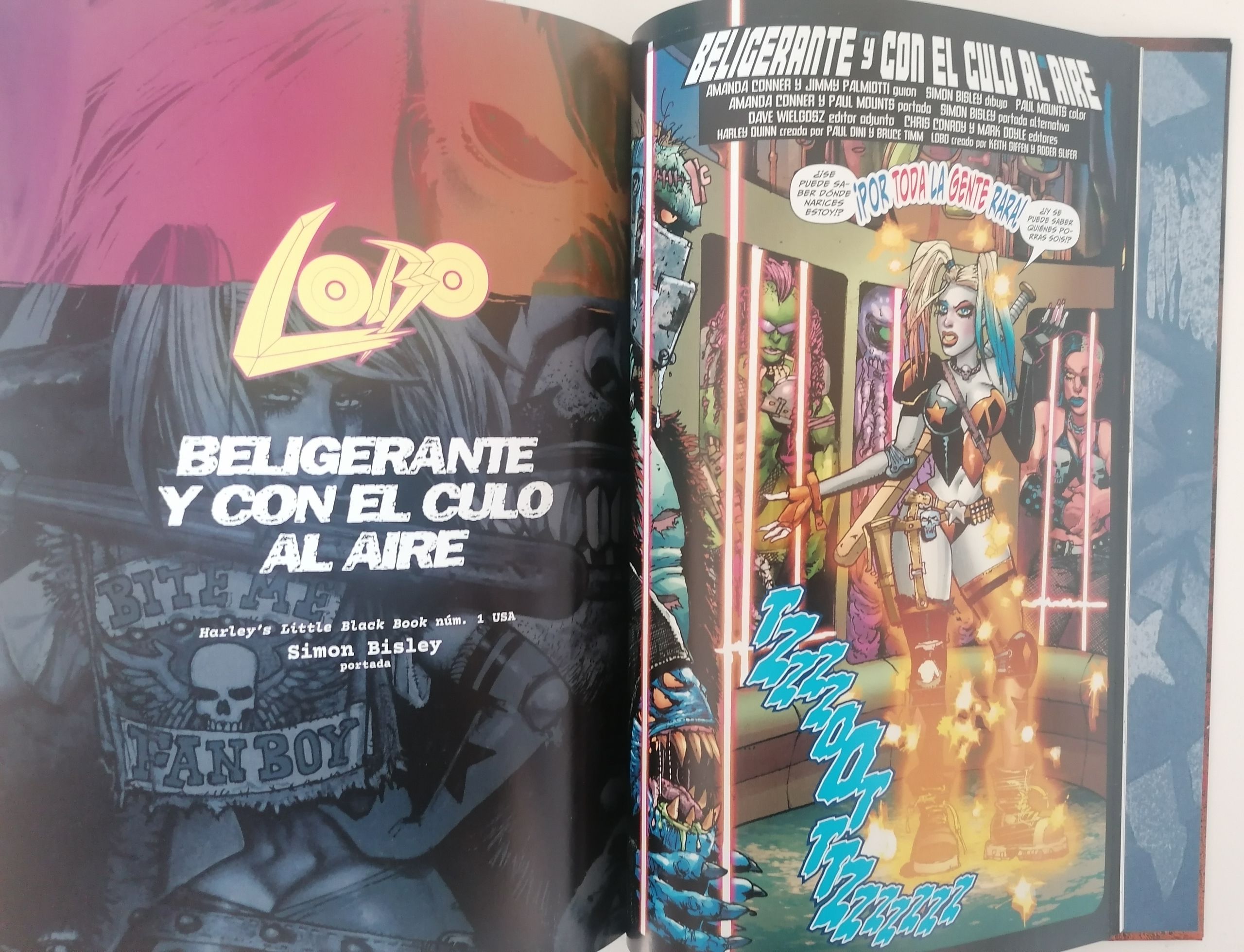 Antes de seguir con la reseña, apartado técnico del cómic: guion con Neil Gaiman, Jimmy Palmiotti, Alan Grant, Keith Giffen, dibujo de Simon Bisley, Keith Giffen, Amanda Conner, contiene Lobo’s Back núms. 1-4, Lobo núms. 1-4, The Lobo Paramilitary Christmas Special, Lobo Gallery: Portraits of a Bastich, Harley's Little Black Book Vol 1 6, Batman/Lobo, Black and White Vol. 1-2 USA, cartoné tapa dura, editorial ECC, 368 páginas y un precio de 43,50 euros.