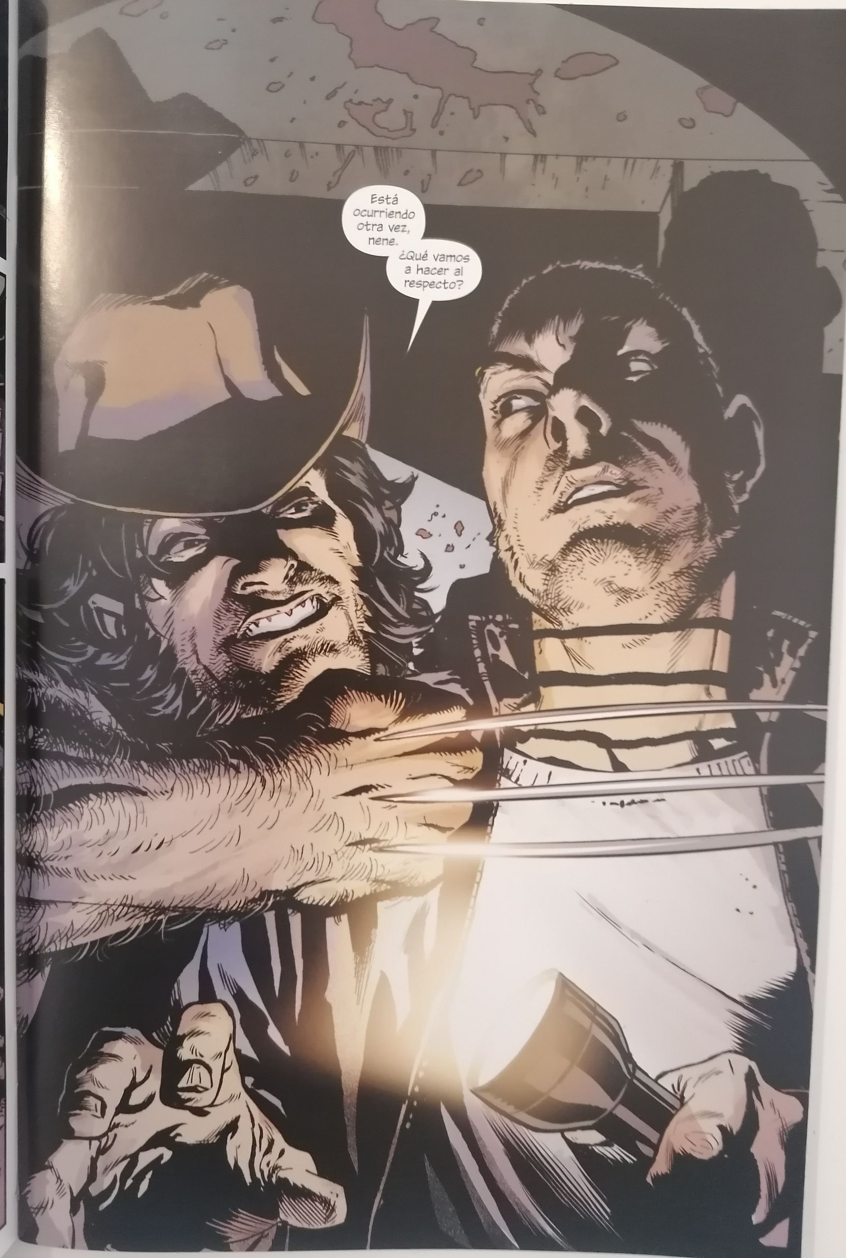 Tras su lectura me ha parecido muy interesante sobre todo el tono de misterio, terror y oscuridad que le vienen que ni pintado tanto a Logan como a Blaze. Por momentos hablamos de una historia que podría entrar dentro de una película de los 80 o 90 o incluso en un capítulo de series como Supernatural o Buffy Cazavampiros. El misterio alrededor del niño funciona, llegando a dar miedo de verdad en varios momentos y Percy no tiene ningún reparo en ser muy contundente a la hora de reflejar asesinatos crueles y salvajes. Además, descubriremos con todo lujo de detalles y con espectaculares viñetas cómo se conocieron Lobezno y el motorista. Les aseguro que no tomaron un café en su primera vez juntos. Por eso y por más razones, sí me ha convencido esta primera grapa. Es más, creo que si alguien está interesado en entrar en alguna de las dos cabeceras o en leer algo de ambos personajes, esta puede ser una buena oportunidad.