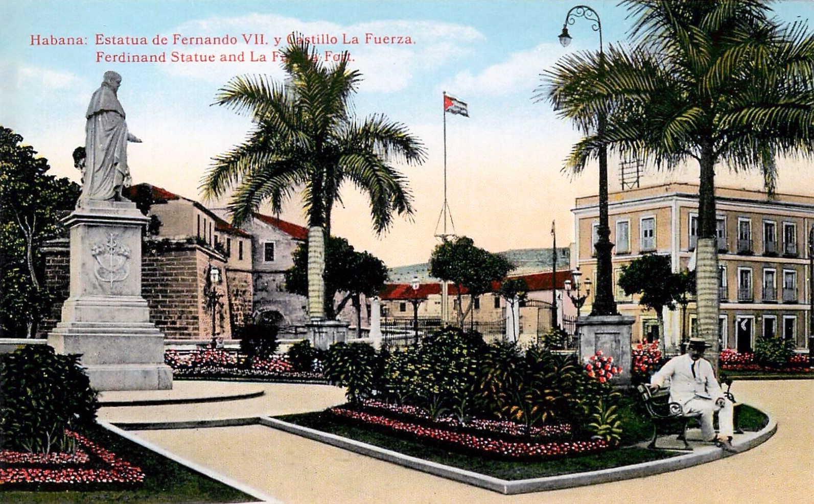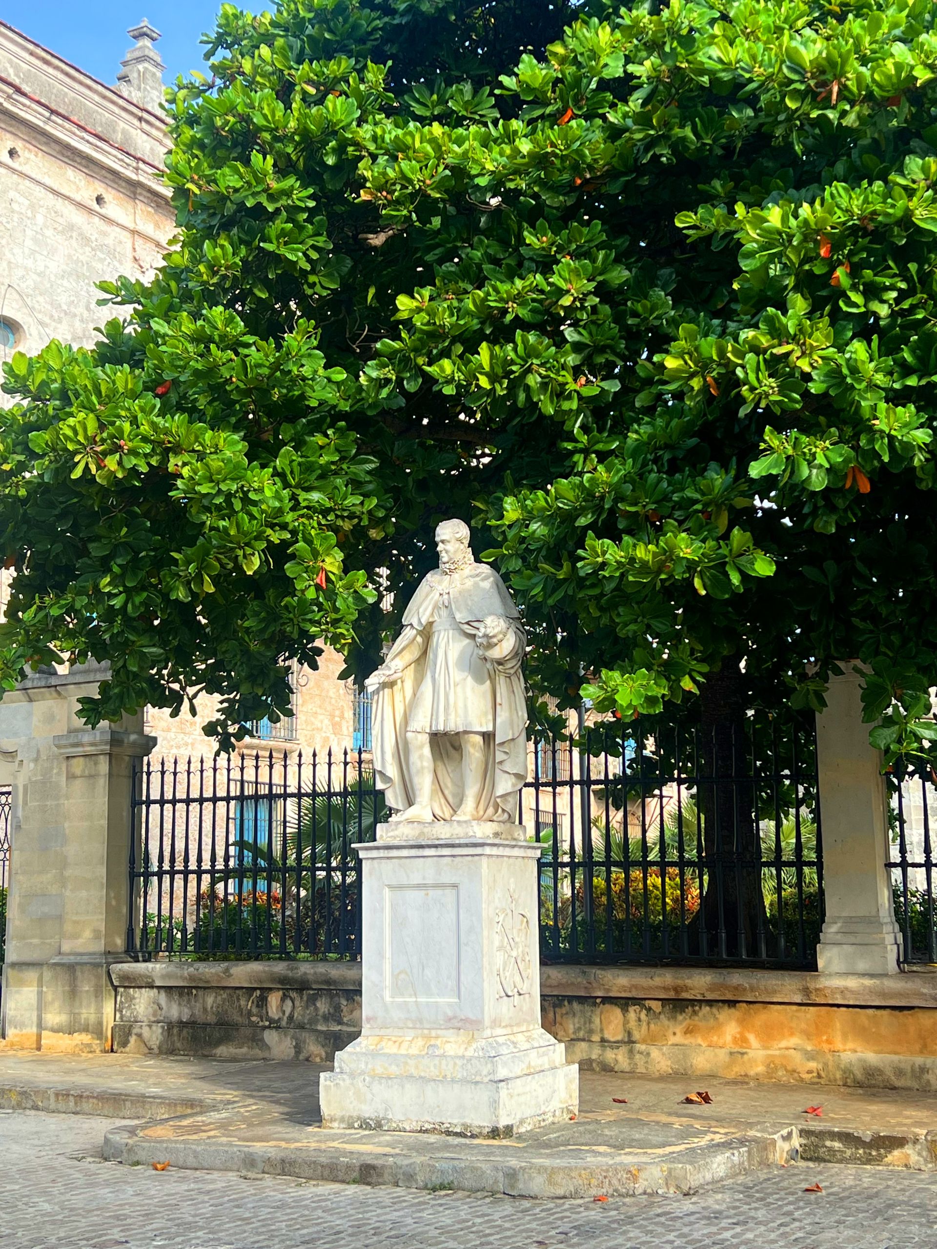 En la Habana colonial predominó la estatuaria conmemorativa, como la de Fernando VII que vemos en la imagen o la de Carlos III, a pocos metros. Originalmente, la estatua de Fernando VII estaba ubicada en el mismo centro de la Plaza de Armas. Se instaló en 1834 para rendir tributo al monarca que había fallecido el año anterior. La de Carlos III es obra del escultor logroñés Cosme Velásquez, director de la Academia de Bellas Artes de Cádiz.