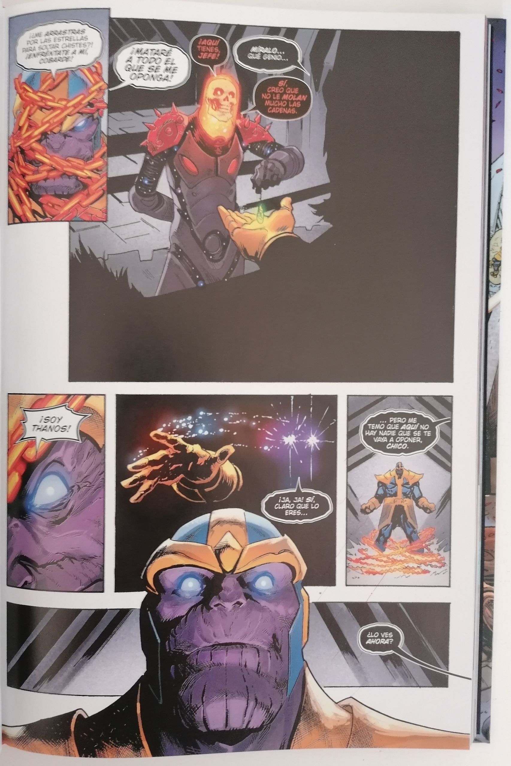 Conclusión: estamos a fin de cuentas ante un cómic bizarro, loco y divertidísimo. Si quieres leer algo suelto de Thanos, adelante. Si te gusta salirte de la continuidad de Marvel, la cual tiene más reglas que estas historias alternativas, adelante. Donny Cates nos da momentos estelares con ese motorista fantasma que sirve como alivio cómico ante la crudeza y contundencia de los dos Thanos protagonistas. No todo será acción, humor y locura, aunque si eres de aquellos que prefieres menos excentricidad en los guiones, quizá esta no sea una locura adecuada para ti. ¿Les he dicho ya que Galactus aparece aquí con una ametralladora? Pues eso. Si gustan, disfruten de la lectura.