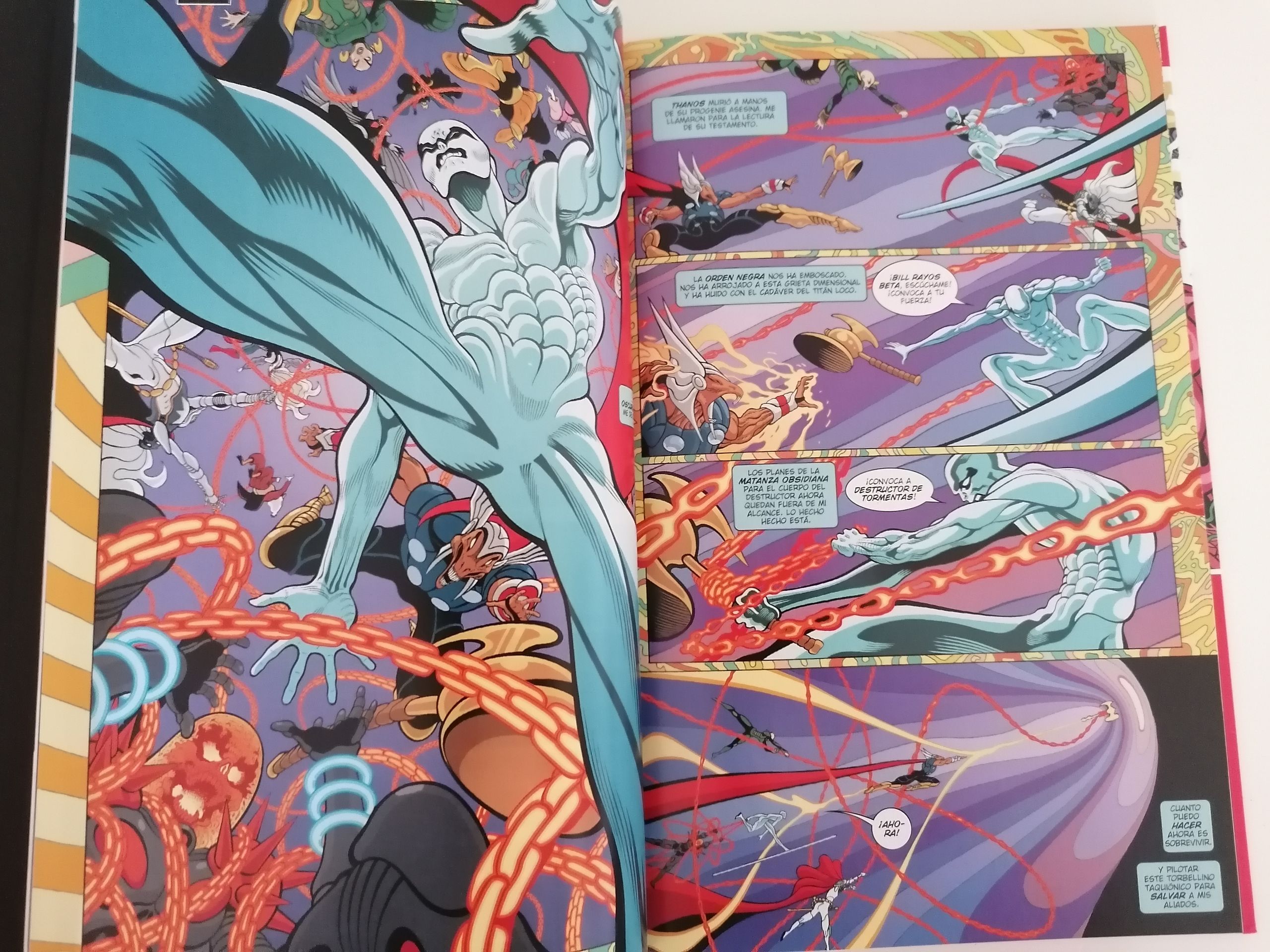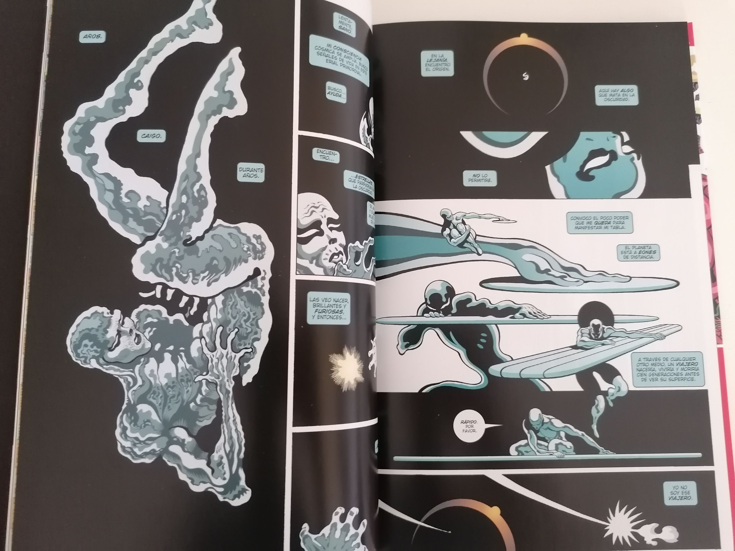 Conclusión: maravillosa lectura de Estela Plateada con el guion loco de Cates y la magia creativa de Tradd Moore. Necesaria experiencia previa en los cómics. No es producto para entrar de primeras. Si te gusta el personaje disfrutarás en todo momento. Si gustan, disfruten de la lectura.