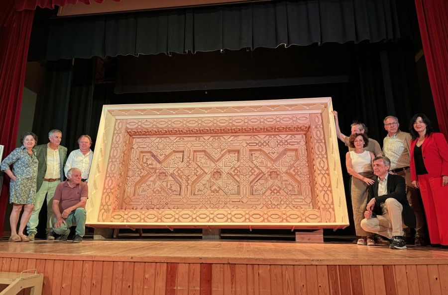 El Centro Cultural de Almudévar ha acogido la presentación de un nuevo alfarje de la Sala Capitular del Monasterio de Sigena (Huesca) que, gracias al proyecto Sigena Mágica, será reconstruido en los próximos meses por parte de seis artesanos almudevanos liderados por el maestro Paco Luis Martos, Premio Nacional de Artesanía.