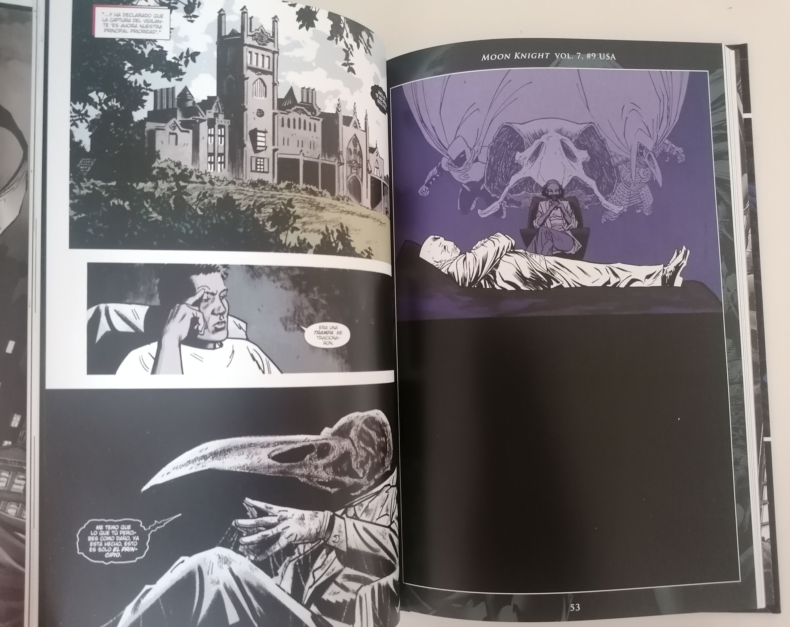 Esto nos comentó el propio Julián en la entrevista: "Si no has leído nada del héroe, te recomendaría primero nuestra Biblioteca Caballero Luna, que recoge la etapa completa de Doug Moench y Bill Sienkiewicz. Es asombroso seguir la manera en que evolucionan los autores, especialmente Sienkiewicz, y acaban construyendo algo verdaderamente memorable. A continuación, la etapa moderna, que empieza con la llegada de Charlie Huston y de David Finch y que estamos recogiendo en Marvel Saga. Caballero Luna. Creo que, especialmente en esta última, encontrarán muchos paralelismos con la serie de TV, y también un desfile de autores muy top del cómic estadounidense que han ido pasando por el personaje, como Brian Michael Bendis o Jeff Lemire".
