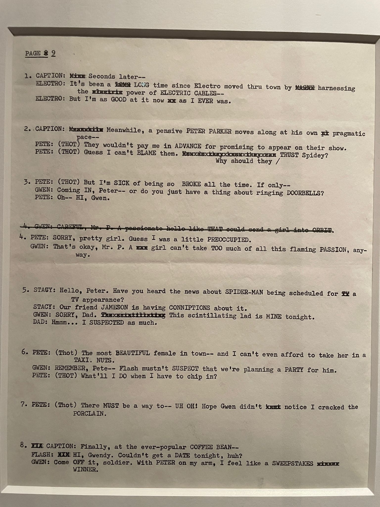 Una página mecanografiada y con anotaciones manuscritas del único guion de Stan Lee que se conserva de su etapa clásica en Amazing Spider-Man.