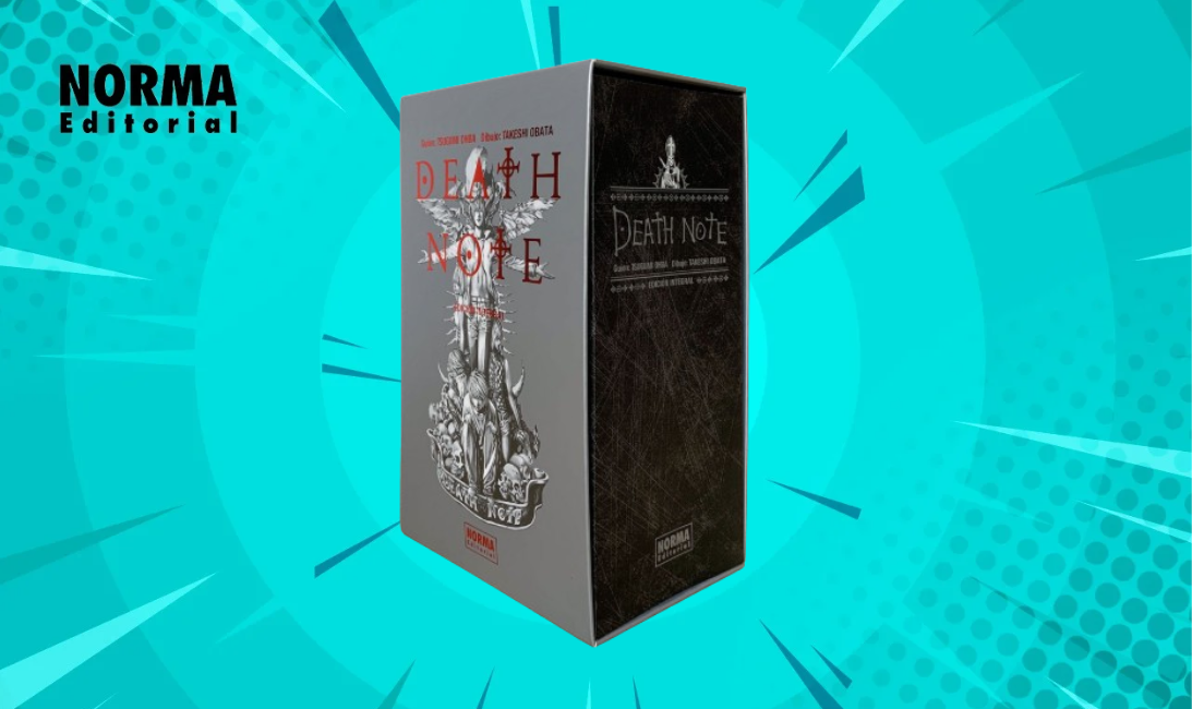 Respecto a la edición de Norma, cosas buenas y cosas malas. La mala es que no es fácil de leer en muchos momentos. No es el formato más cómodo al tener tantas páginas y sobre todo se hace raro cuando los bocadillos o las imágenes se pegan mucho al centro y tienes que girarlo para leer. Ahora bien, la edición estéticamente es muy bonita, hay calidad en los materiales porque permite abrir el tomo sin miedo a que se rompa y tienes todo Death Note en un solo cofre. Pros y contras, lo de siempre. Cuestión de gustos. A mí entender, si lo quieres todo y darte un atracón, la edición vale la pena. Consejo: de golpe no. Hay mucho diálogo, reflexiones, intentos de atrapar al otro a través de juegos y dicotomías mentales... Paso a paso y con buena letra para poder disfrutarlo sin que te pase por encima.