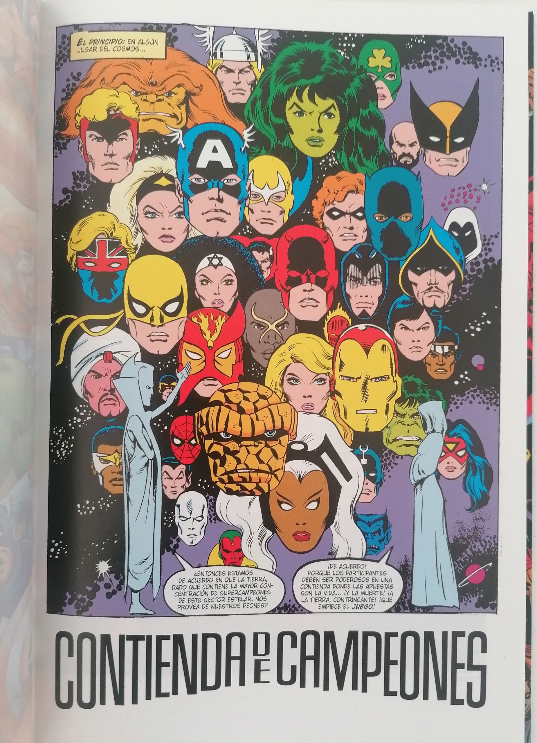 Este cómic sería una especie de aperitivo para las Secret Wars, otro evento más grande, que tuvo mucho más éxito y que en su origen tuvo lugar para vender juguetes. Sí, para vender figuritas (os lo cuento aquí). Ahí veíamos de nuevo a todos los personajes de Marvel, buenos y malos, teniendo que luchar unos contra otros en un planeta que hacía las veces de tatami o escenario de la lucha. Pues bien, si cogemos Secret Wars como ejemplo, Contienda de Campeones serían las patatas fritas que te ponen antes del filete. Se agradecen, están ricas, pero tampoco te van a volver loco porque tú lo que quieres es un plato principal.