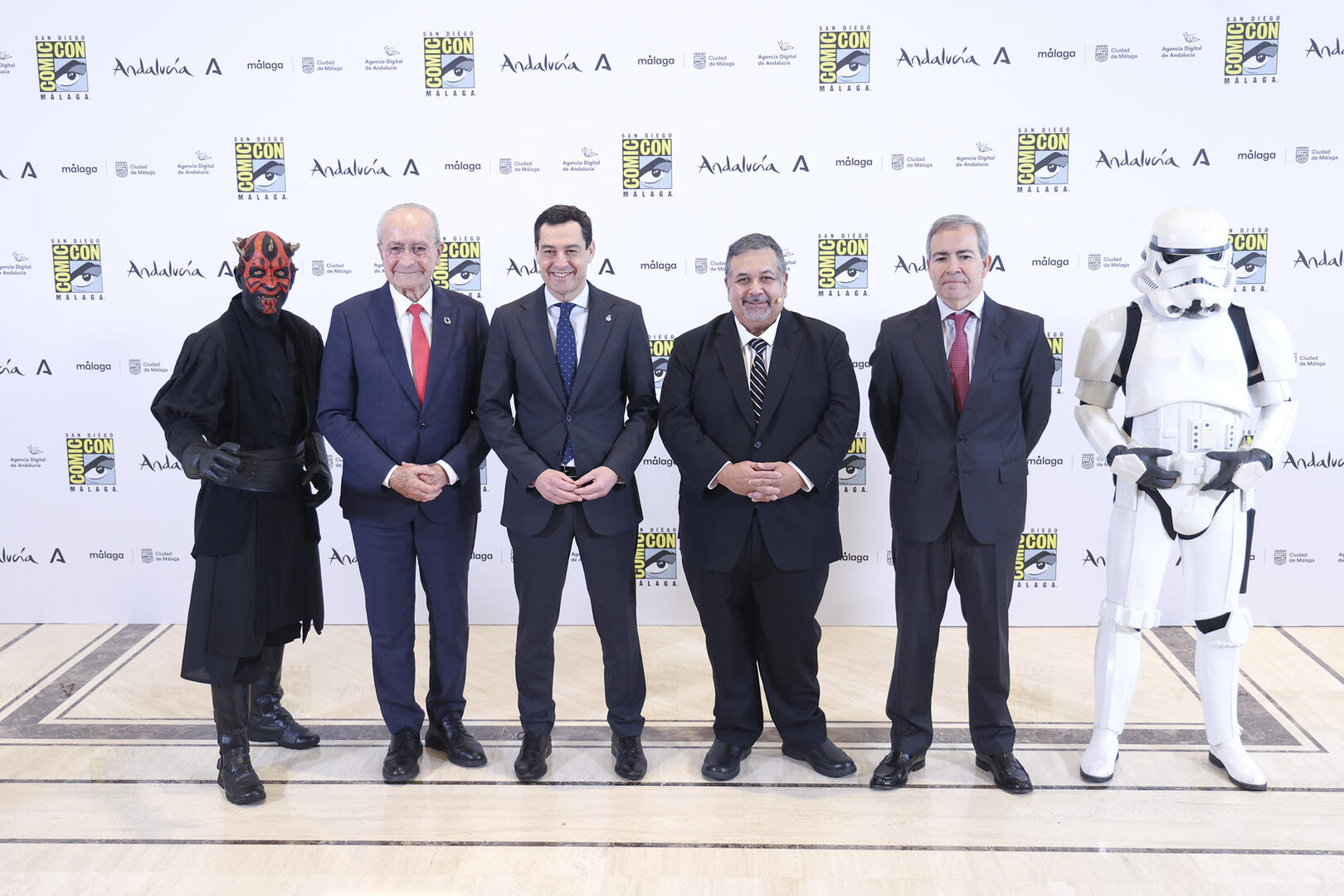 El presidente de la Junta de Andalucía, Juanma Moreno, ha intervenido en la presentación de la San Diego Comic-Con Málaga 2025 y ha elogiado la llegada de un evento tan importante a territorio español: "Gracias por hacer de esta ciudad un orgullo. Gracias a los directivos, profesionales… por confiar en Andalucía. Welcome to Málaga, it’s a pleasure to have you here".
