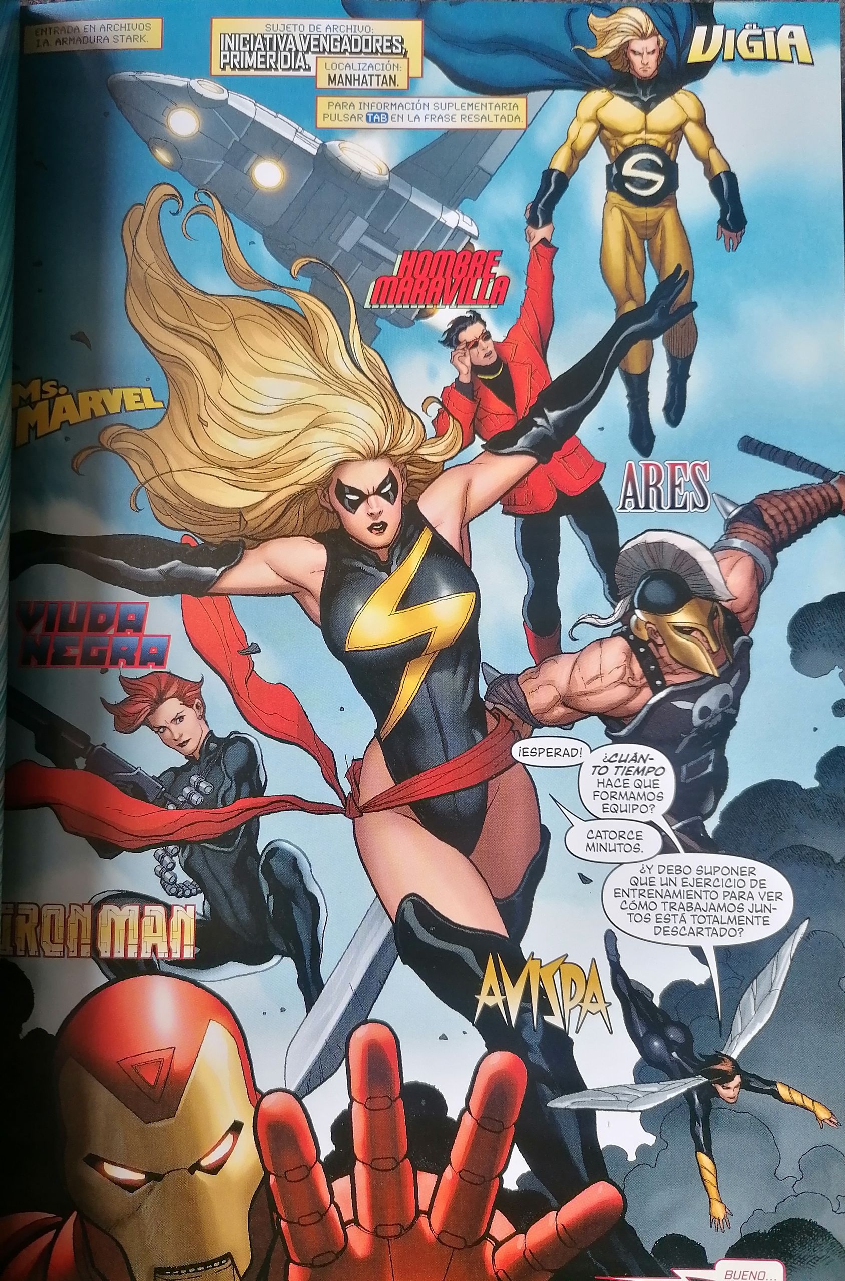 Estas 11 grapas arrancan con Tony y Danvers eligiendo superhéroes para sus Poderosos Vengadores. Los miembros aparte de Iron Man y Ms Marvel serán Wonder Man, Avispa, Viuda Negra, Sentry, Ares y Spider Woman. El grupo se irá enfrentando a diferentes enemigos y tendremos arcos en los que lucharán contra Ultrón o contra un mundo Venomnizado con toda Nueva York repleta de simbiontes. Casi nada.