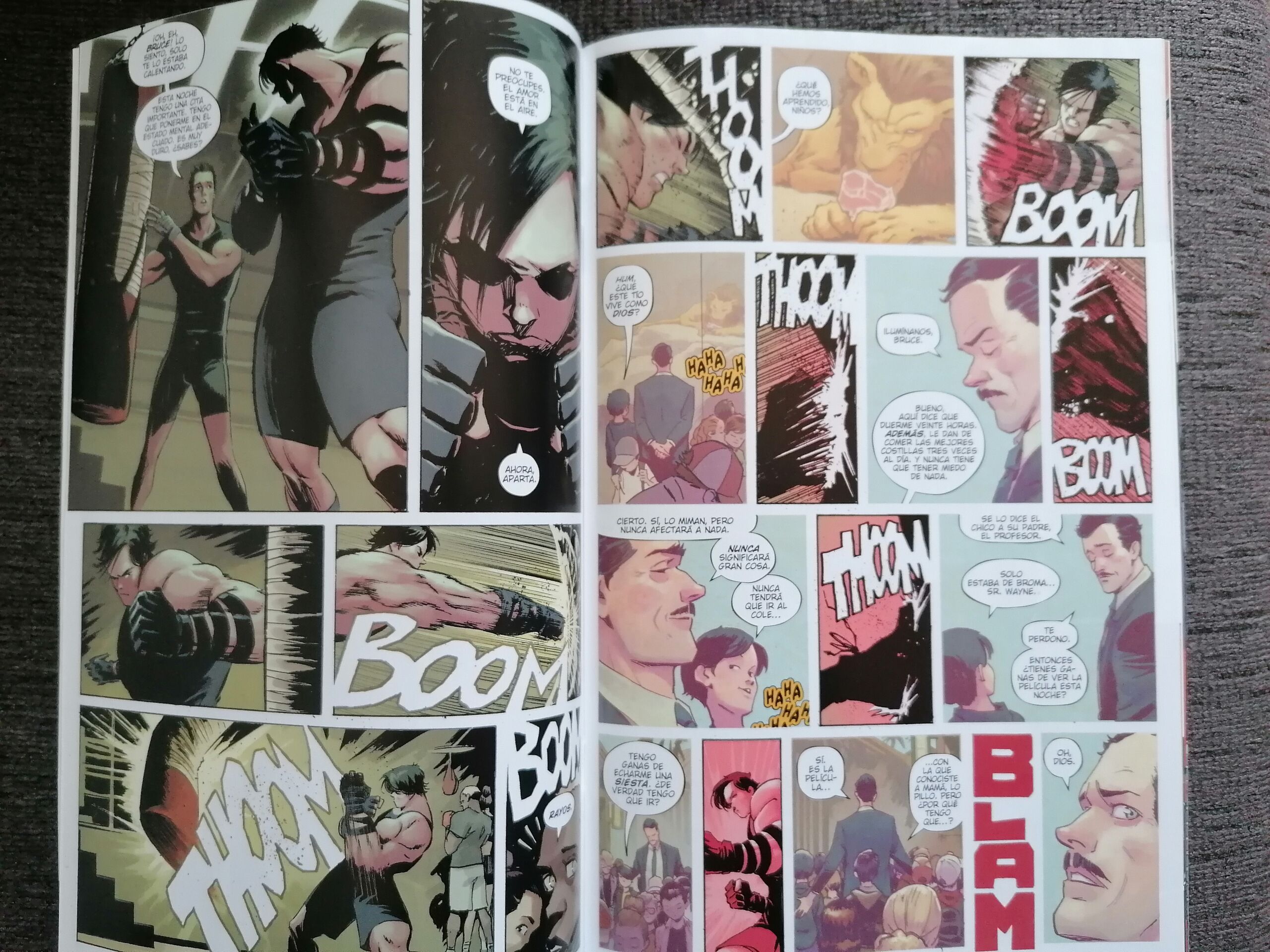 ¡Qué barbaridad de Batman nos han metido aquí Scott Snyder al guion y Nick Dragotta al dibujo! El murciélago de Gotham siempre ha estado muy fuerte y su potencia física y de combate han sido las mejores del mundo, pero es que aquí parece que esta versión joven de Bruce Wayne hace pesas con edificios y no con mancuernas. Visualmente tenemos a un Batman tochísimo, por decirlo de manera coloquial, y no solo eso sino que encima ni es rico ni vive en una mansión ni nada por el estilo. Aquí Bruce es un currante experto en mecánica, ingeniería, arquitectura, política y, por supuesto, en dar palizas con todas las artes marciales que se han inventado y se inventarán. Si Batman ya de por sí daba la del pulpo a sus villanos, éste directamente los deja para bebe con pajita el resto de su existencia.