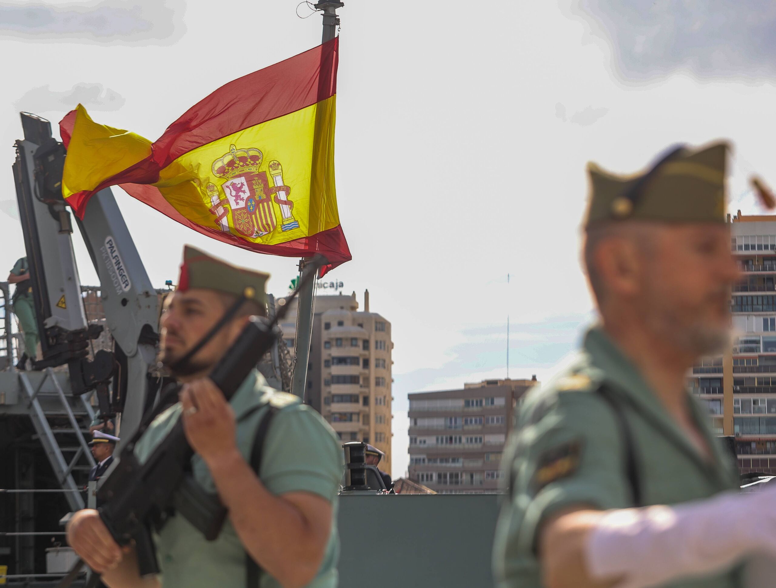 Entre la expectación del público y la disciplina del acto, la bandera de España se izaba en el mástil, en uno de los momentos más solemnes de la mañana.