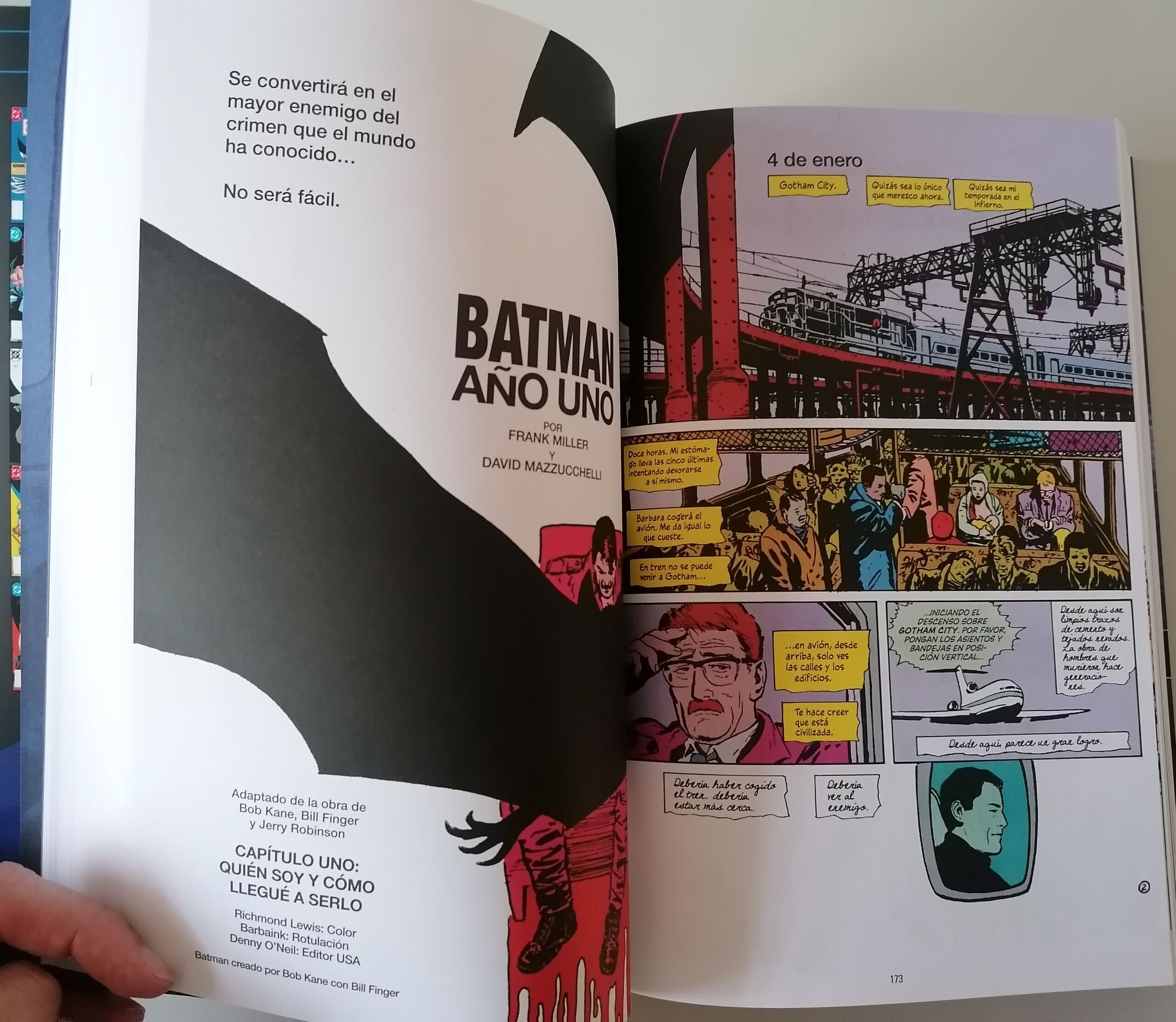 En cuanto al interior, papel poroso con un detalle espectacular para los amantes del Año uno de Frank Miller y David Mazzucchelli. ¡Está el color original de la obra! Este punto, sin duda, es un detalle muy a tener en cuenta para coleccionistas que tengan este Año Uno en diferentes formatos y quieran ver la evolución del mismo a lo largo de los años. En mi caso, como coleccionista, tener esta obra con su color original en este cómic y con el nuevo en otros es un punto muy a favor de mi comicteca.