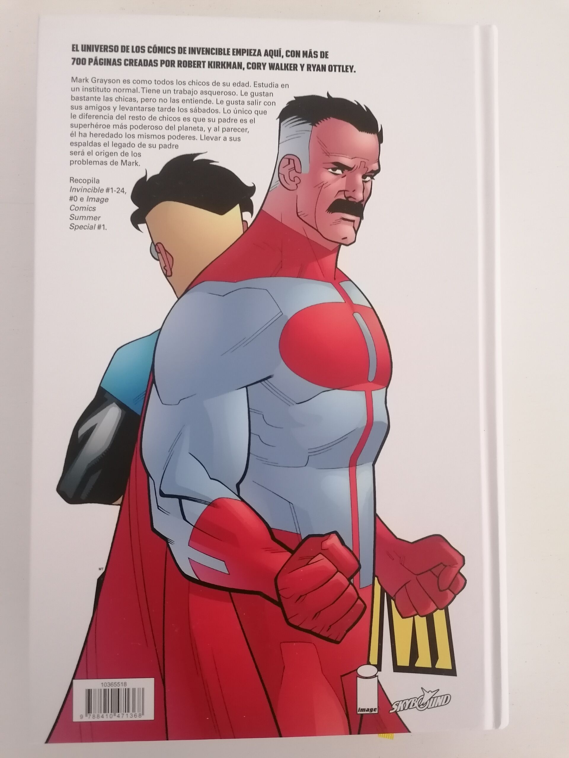 Invencible: guion Robert Kirkman, dibujo de Ryan Ottley y Cory Walker, cartoné, contiene Invencible núms. 1-24, editorial Planeta, 760 páginas y un precio de 60 euros.
