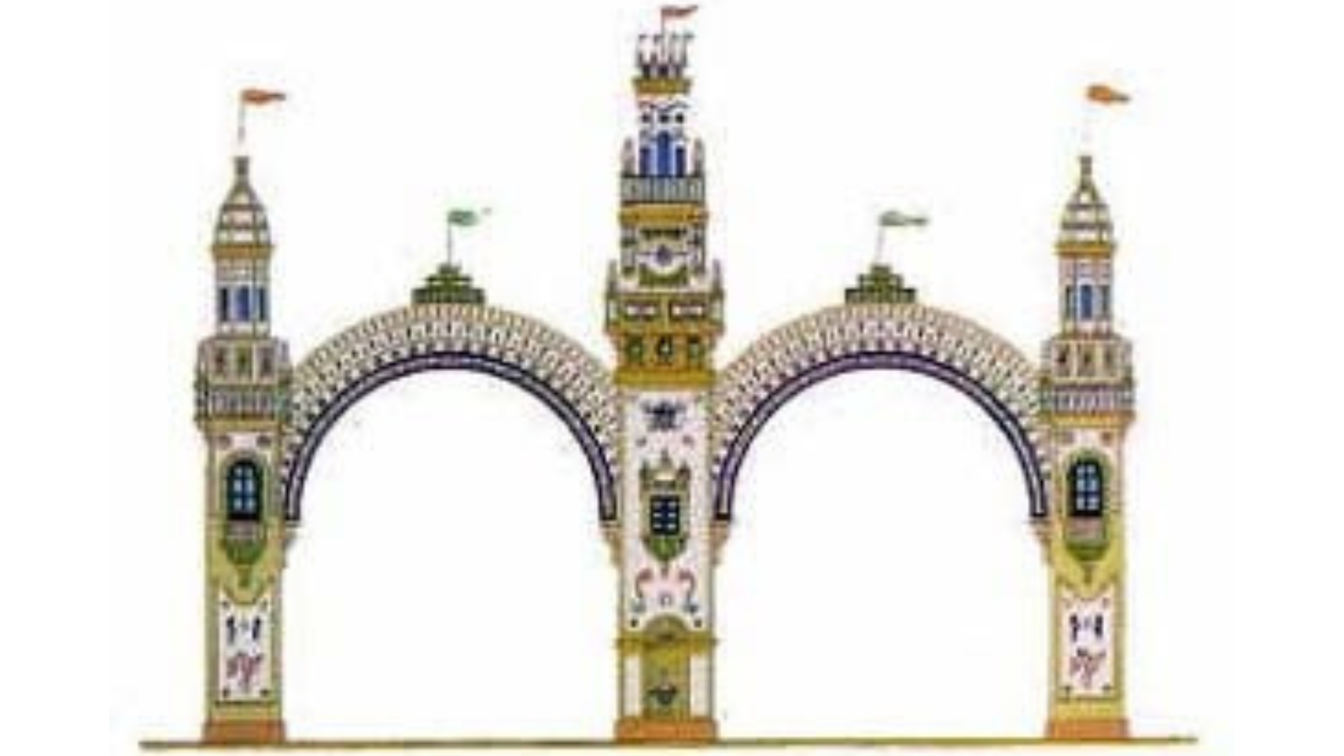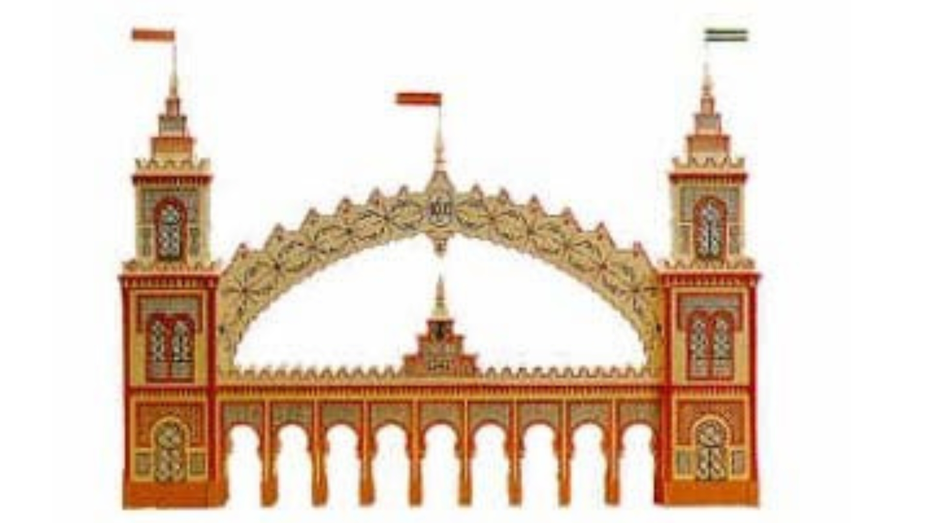 Inspirado en el Pabellón de Colombia de la Exposición del 29. En la zona superior de las torres aparece el escudo de la ciudad, además de las torres presididas por la bandera de España.