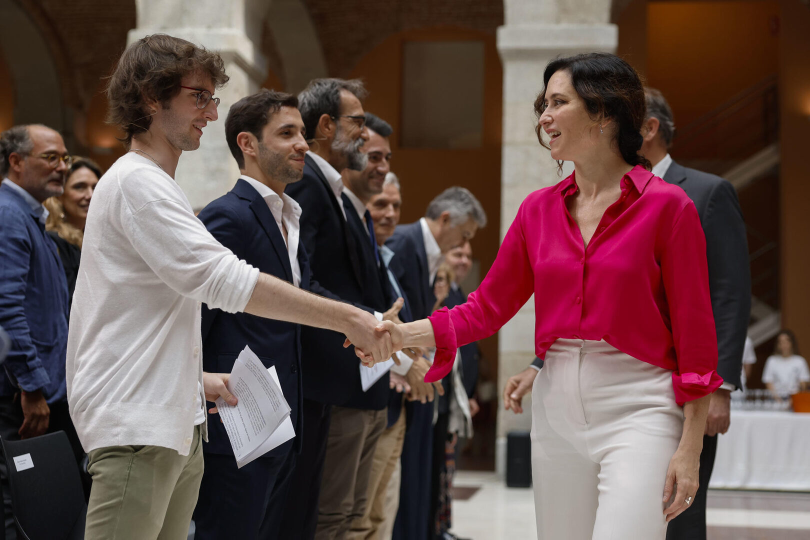 La presidenta de la Comunidad de Madrid, Isabel Díaz Ayuso, ha presentado este martes en la Real Casa de Correos el laboratorio de IA Sperid Labs, junto al CEO de la empresa, el jovencísimo –21 años tiene el chaval– ingeniero informático Chema Garabito, y el comisario de exposiciones Eloy Martínez de la Pera. La líder del ejecutivo regional ha subrayado que cada vez que alguien con una buena idea "llama a esta puerta, encuentra una administración que no pretende tutelar ni dirigir, sino acompañar".