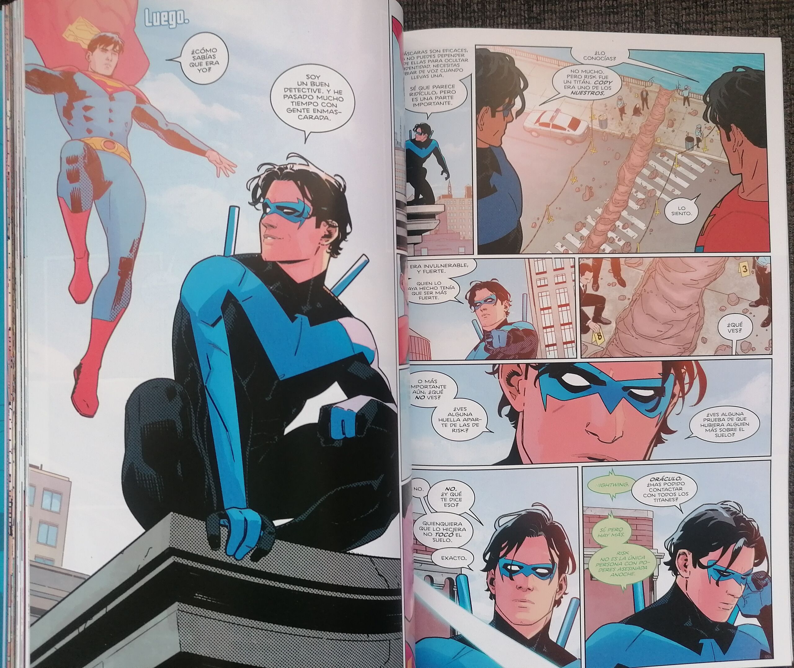 Antes de entrar en materia, vamos en el análisis técnico del cómic: guion de Tom Taylor, dibujo de Bruno Redondo, rústica tapa blanda, contiene Nightwing 87-89, Superman: Son of Kal-El 9, y Nightwing 90-91, editorial Panini, 160 páginas y un precio de 14 euros.