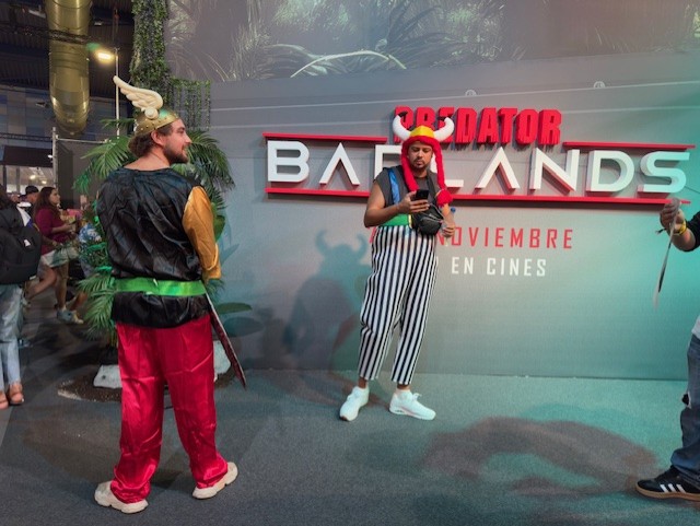 Público asistente, convenientemente disfrazados, en el stand de Predator: Badlands, también presentada en el evento junto a Elle Fanning y su director Dan Trachtenberg.