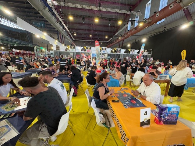 Una vista del exhibitor hall repleto de tiendas, stands, instalaciones y presentaciones varias.