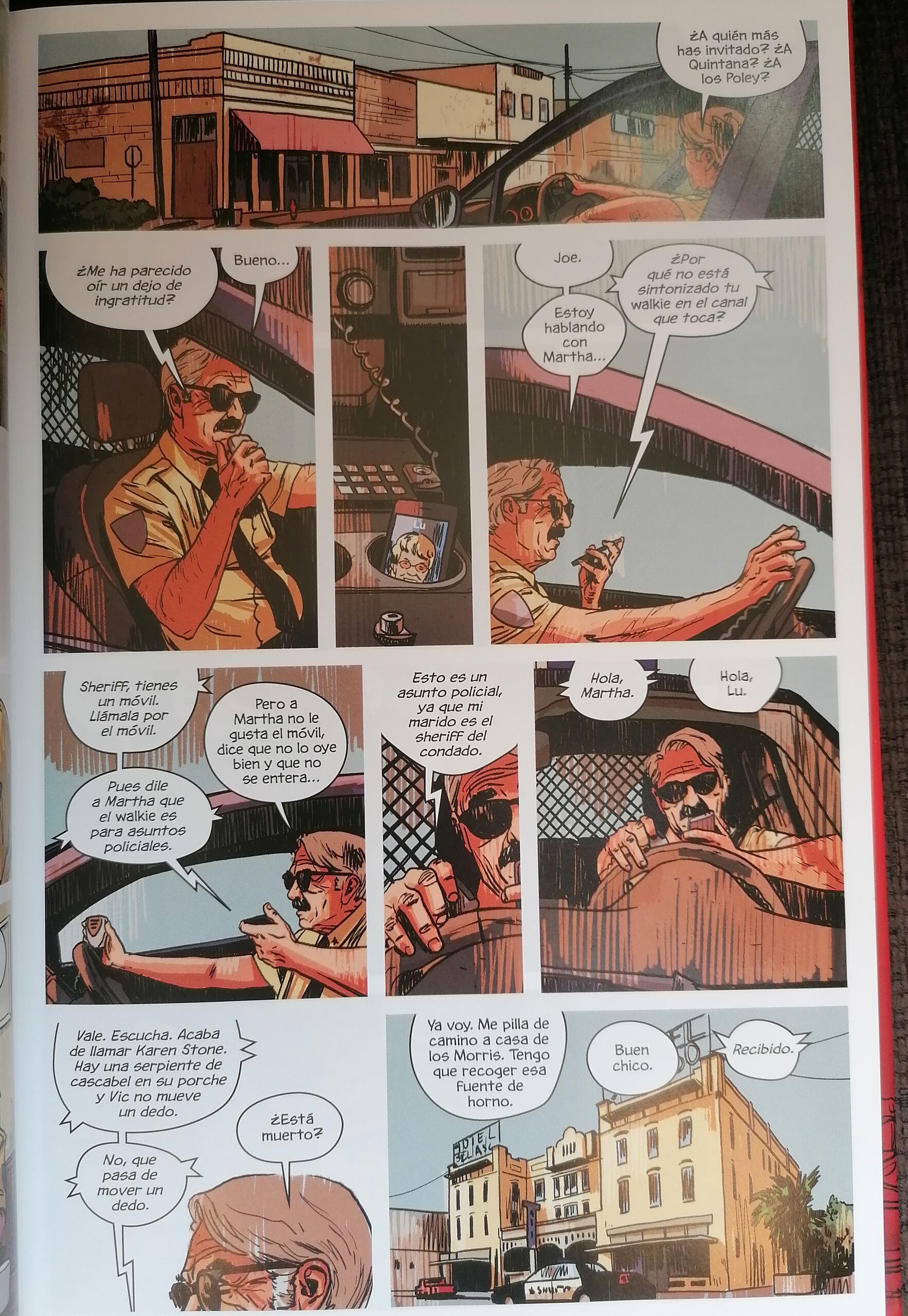 En este primer volumen de That Texas Blood nos encontramos con el sheriff Joe Bob Coates, el cual tiene una importante crisis existencial propia de la edad y de los largos años que lleva ejerciendo su trabajo en Ambrose (Texas). A eso se suma un conflicto violento dentro del pueblo que acaba en muerte y en el regreso de un escritor que abandonó el pueblo para salir de la oscuridad y ahora debe volver a él para una vendetta personal. No puedo revelar mucho más porque la historia en sí es sencilla y si desvelas más de la trama, básicamente te cargas medio cómic.