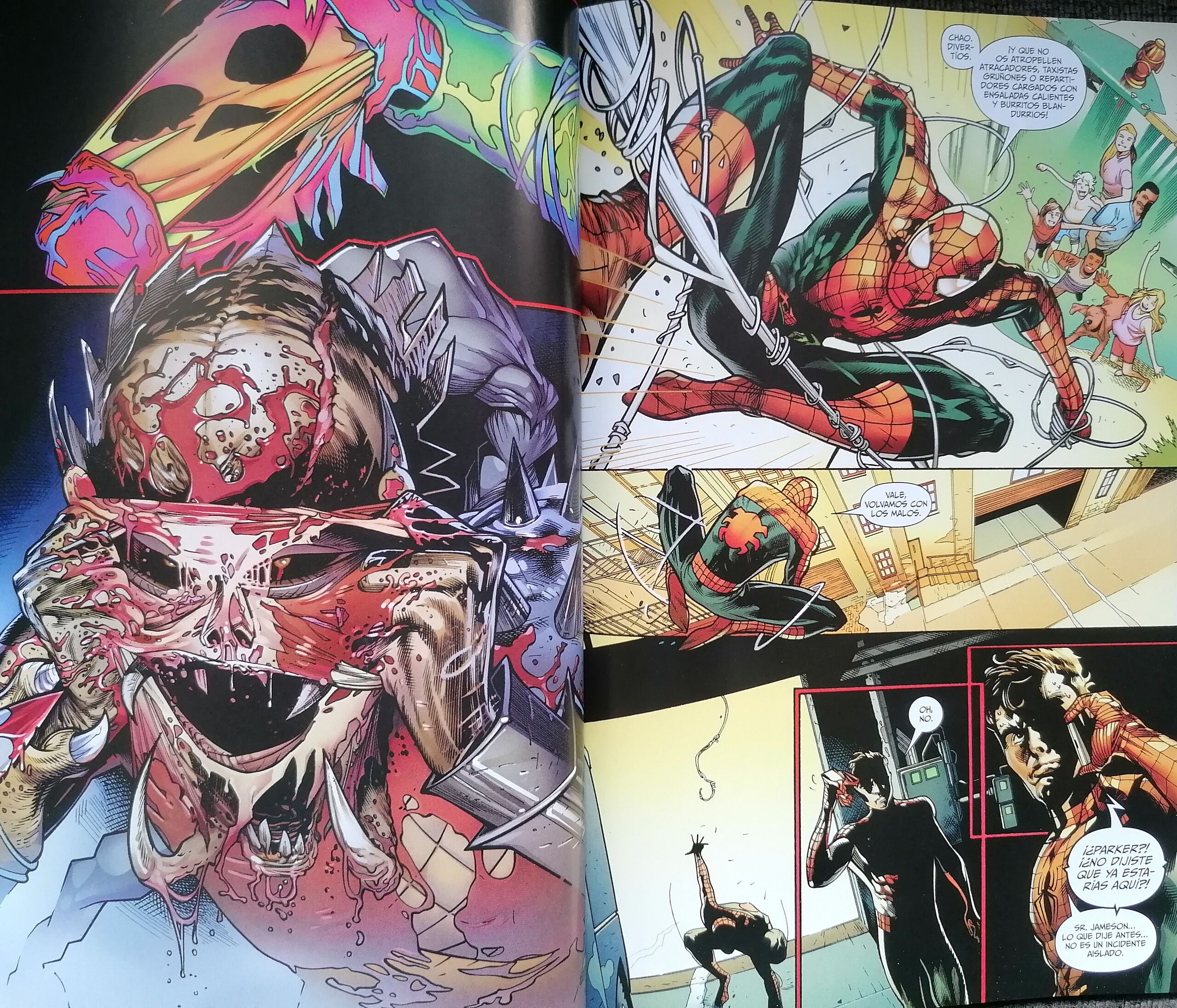 Pero la cosa no queda en un duelo entre el trepamuros y el Predator ya que por el camino aparecerá lo que para mí ha dado el salto de calidad al cómic. Ojo, spoiler. Hay una aparición estelar que viene al pelo para este contexto y es que si de cazadores va el asunto, qué mejor que meter en la ecuación al señor Kraven. Sí, así es, el cazador más famoso dentro del repertorio de villanos de la araña sentirá que alguien o algo está meando en su esquina y ya saben cómo se pone este señor cuando su coto de caza es profanado. Además, Mary Jane andará por ahí metiéndose en problemas y JJ Jameson hará sus cameos tocando como siempre las narices a Peter Parker.