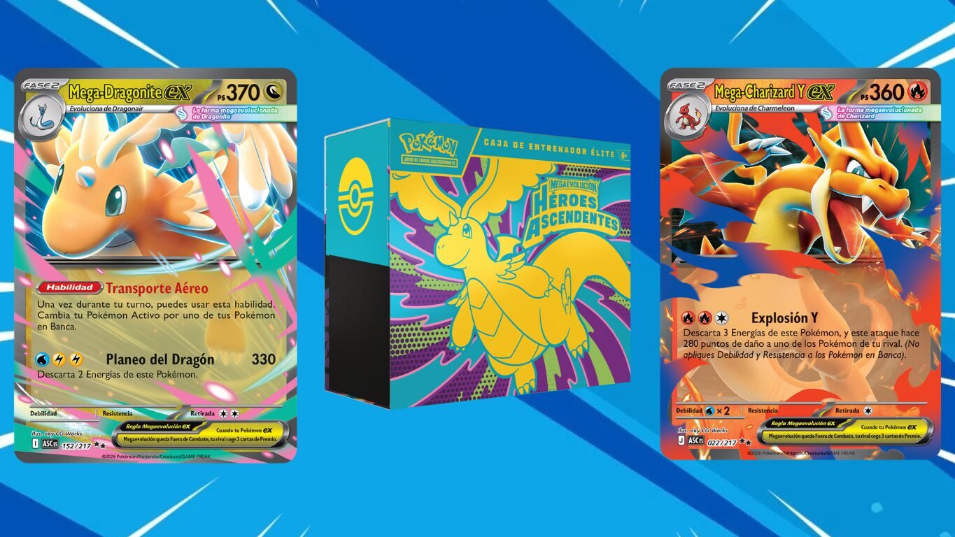- Caja de Entrenador Élite de Megaevolución-Héroes Ascendentes (disponible el 20 de febrero de 2026):: Incluye nueve sobres de mejora de Megaevolución-Héroes Ascendentes, una carta de promoción de Zekrom de N de estilo Rara Ilustración y varios accesorios del juego.