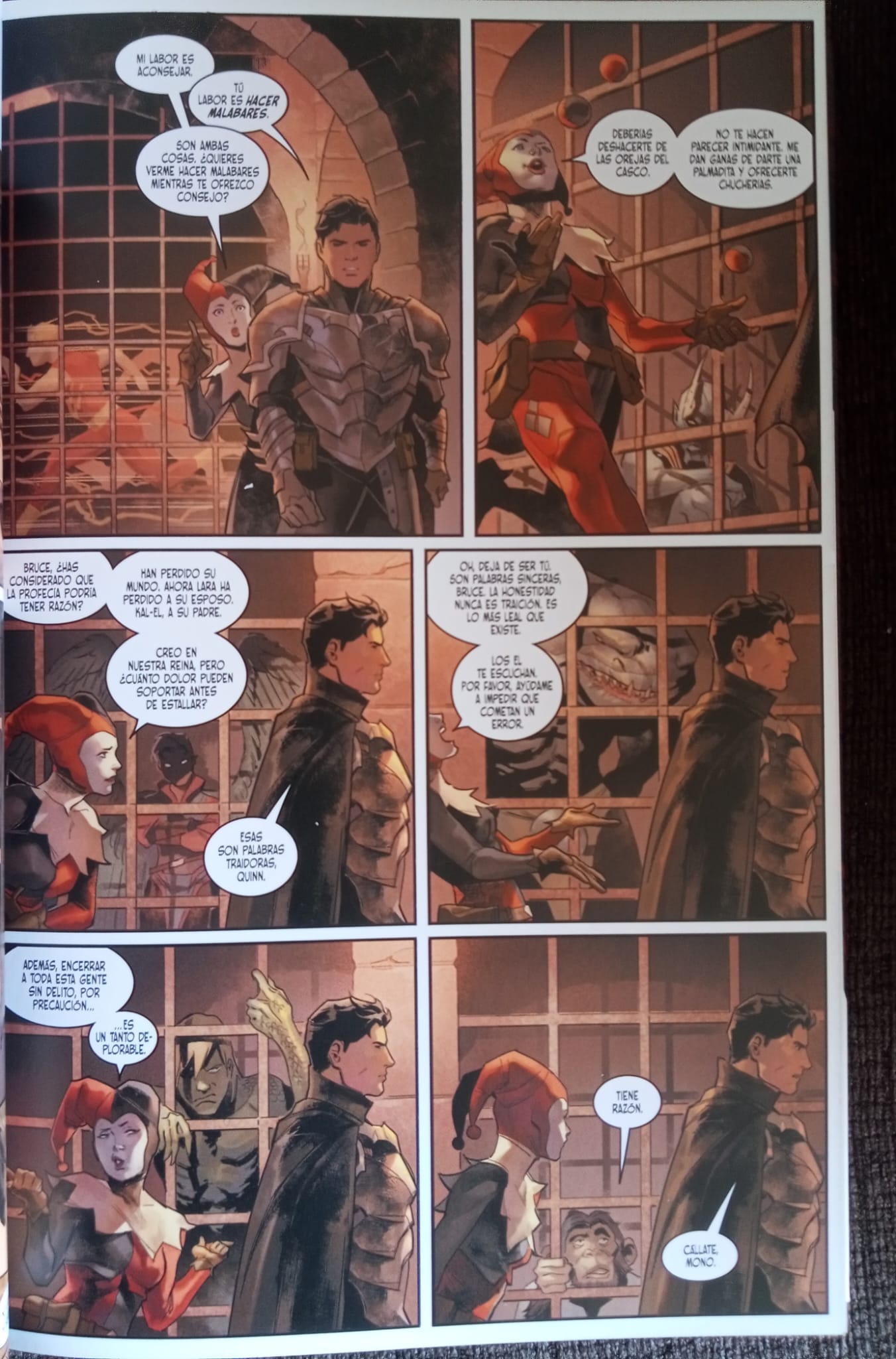 Veremos a Batman, Superman, Wonder Woman, Green Arrow, Constantine, Alfred, Hiedra Venenosa, Harley Quinn, Lex Luthor, Canario Negro, Linterna Verde... Algunos en su papel habitual, pero con un contexto muy diferente y lleno de sorpresas, y otros con un rol que te dejará sentado de golpe. No solo crea una buena historia y un Juego de Tronos de DC épico, sino que Taylor se permite una serie de licencias sorprendentes que le dan el toque final a un cómic espectacular.