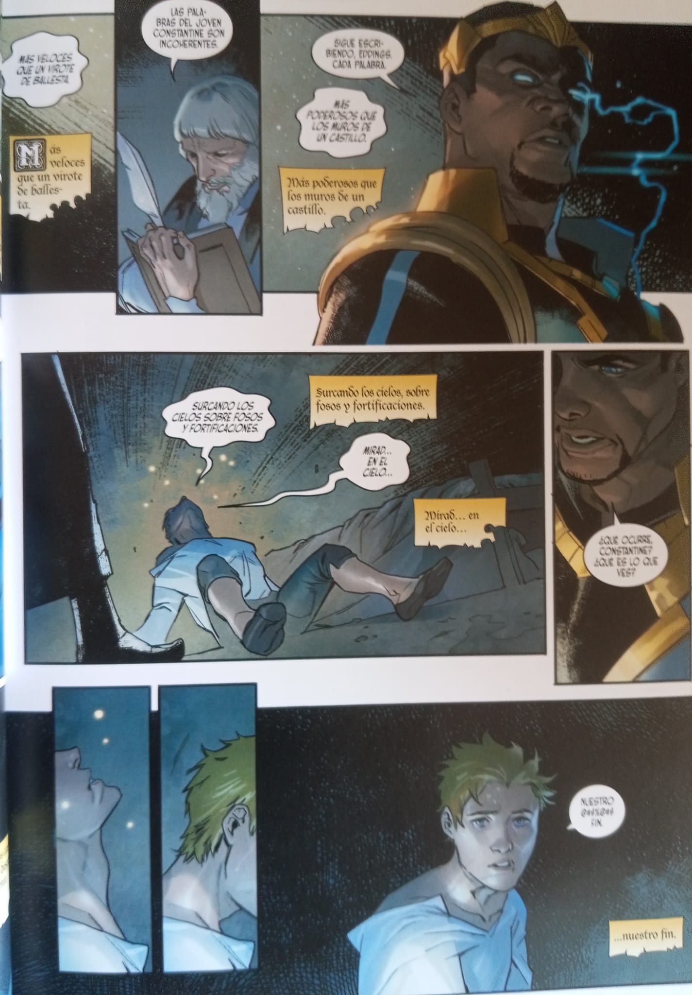 Si tengo que elegir algún otro personaje, también me quedo con mi buen amigo John Constantine. Como siempre, la acaba liando. De hecho, es su profecía la que arranca todo y, aunque sea más el Constantine suavizado de DC y no el de Vértigo, John siempre convence.