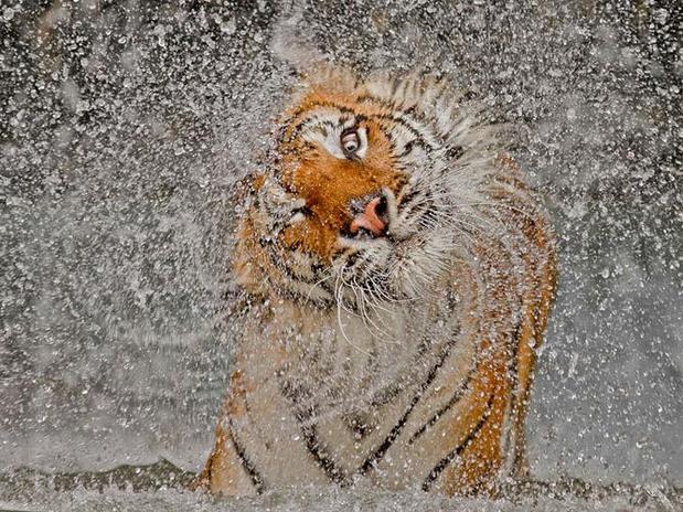 La revista National Geographic ha seleccionado las mejores imágenes del año que acaba de terminar, 2012. Según la revista, se han recibido 22.000 fotos de fotógrafos de al menos 150 países. La ganadora ha sido la imagen impresionante de un tigre de bengala sacudiéndose.