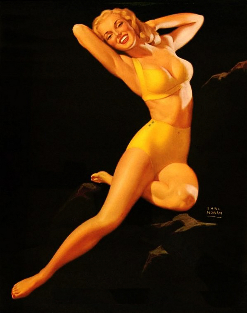 ...Y Marilyn Monroe se convirtió en Pin Up. Earl Moran, fotógrafo y pintor de prestigio, contribuyó a aumentar un poco más la fama del mito viviente con su labor destinada a revistas masculinas. Aquí una muestra.