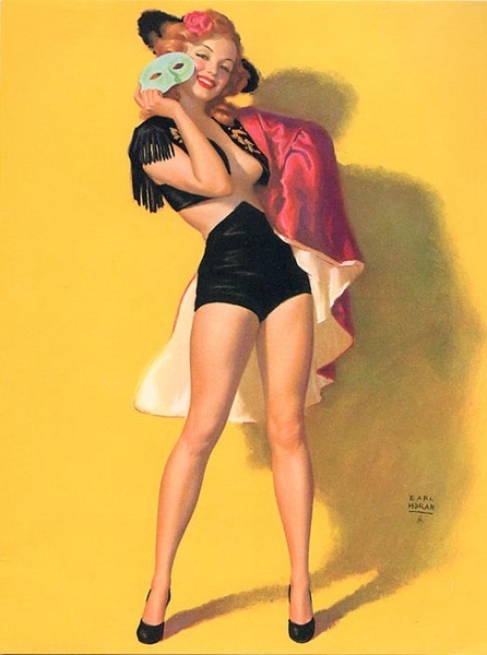 La sesión fotográfica de Marilyn torera dio de sí un puñado de divertidas ilustraciones muy sexy. Reparen en la longitud y estilización de las piernas de la pin-up pintada por Earl Moran en 1950.