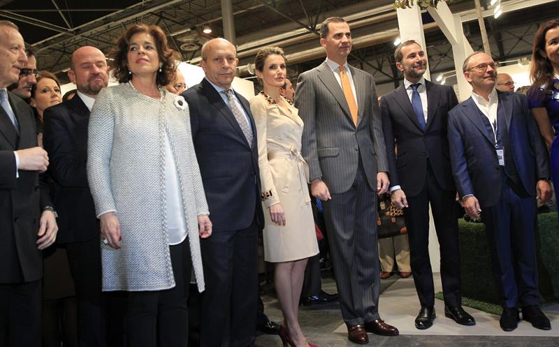Los Príncipes de Asturias, acompañados por el ministro de Educación, Cultura y Deporte, José Ignacio Wert, y por el director de la feria internacional de arte contemporáneo ARCO, Carlos Urroz.