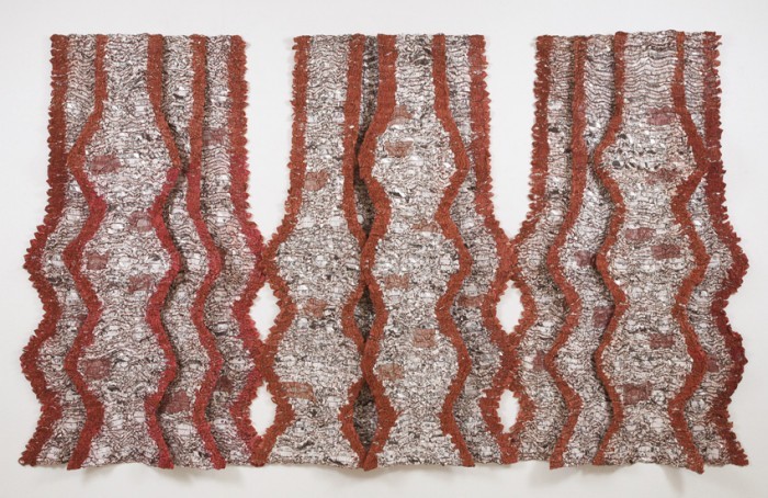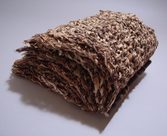El artista Emiko Nakano crea la obra titulada "Cambodian Letters" La obra está creada con papel japonés cortado en tiras y tejido para conseguir este efecto.