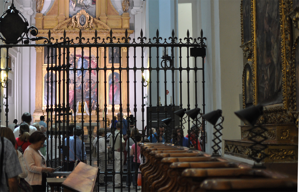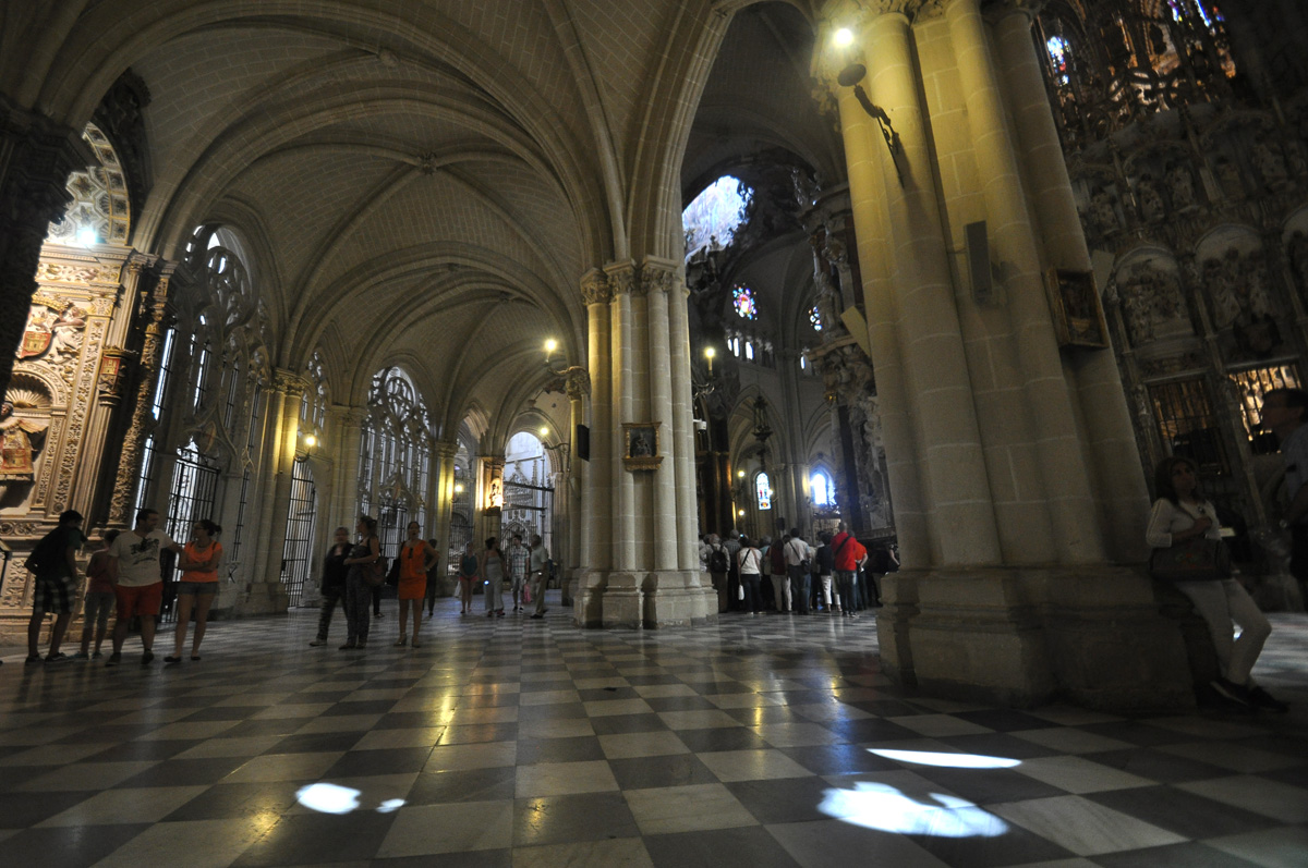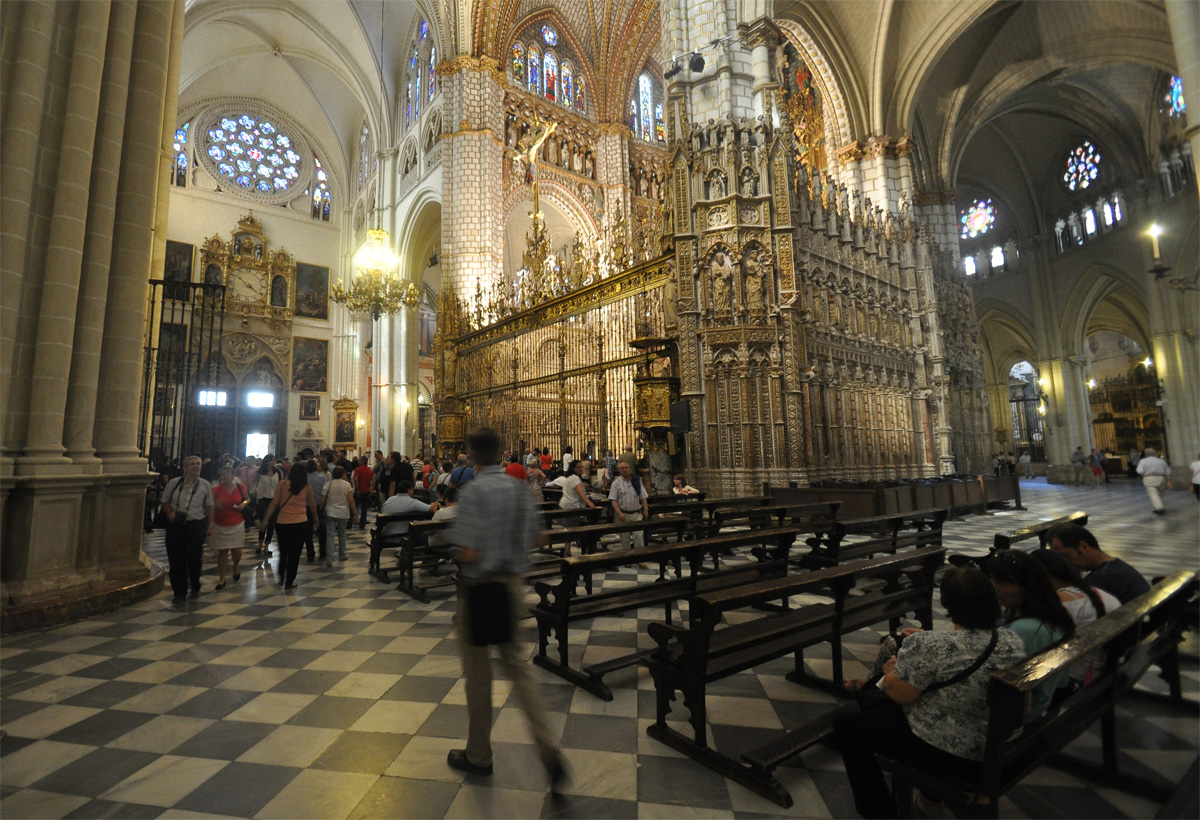 En el interior de la catedral de Toledo, también llena de visitantes. De fondo, el enrejado del altar mayor.