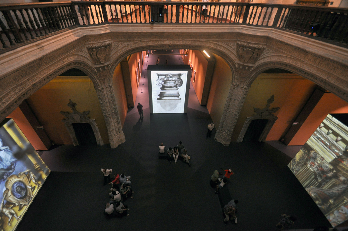 Además de la muestra de obras del Greco, el claustro central del Museo de Santa Cruz en Toledo ofrecía a sus visitantes la posibilidad de descansar durante unos minutos mientras se proyectaban varias imágenes del pintor en cuatro pantallas gigantes.