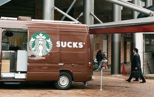 Starbucks nunca hubiera aprobado que sus productos se repartieran en esta furgoneta.