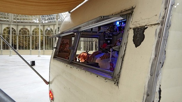 En el Palacio de Cristal del Museo Reina Sofía hay instalada una caravana. La han puesto allí los artistas canadienses Janet Cardiff (Brussels, Ontario, 1957) y George Bures Miller (Vegreville, Alberta, 1960) con un objetivo: que los visitantes se acerquen a mirar y curiosear en el interior, del que sale, entre otros sonidos, una especie de murmullo femenino. Apelan a la condición de voyeur del espectador.