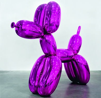 La lista incluye uno de esos gigantescos y candorosos perritos de apariencia hinchable, aquí color magenta, junto a varias creaciones de la misma serie a la que pertenece, Celebration (1994-2000).