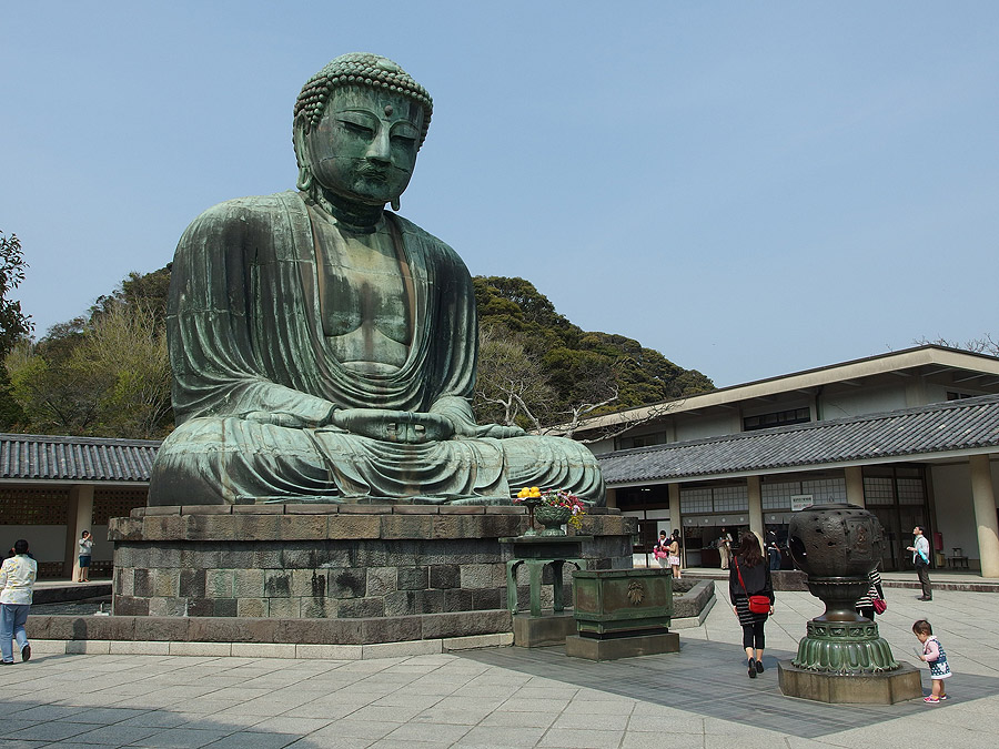Las grandes estatuas de Buda son un elemento relativamente habitual en Extremo Oriente. Una de las más famosas es este Buda de Kamakura que recibe su nombre de la ciudad en la que se encuentra y es una gran representación de bronce de más de 13 metros de altura y 93 toneladas de peso, pese a que el interior está hueco y, de hecho, se puede visitar su interior. Se cree que es del año 1250, aunque no se tiene certeza absoluta de que no se hubiese cambiado esta primera estatua posteriormente. Ha aparecido en numerosas obras de ficción, entre ellas el Kim de Kipling