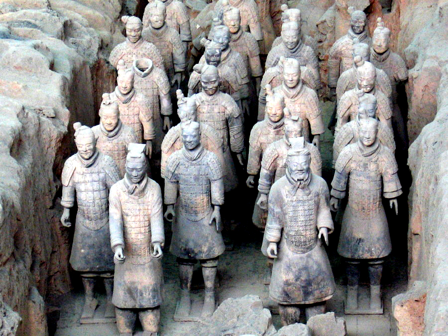 El Ejército de Terracota del primer emperador de China fue seguramente el mayor descubrimiento arqueológico de la segunda mitad del S XX: no es una estatua sino un verdadero ejército de miles de estatuas con las que se enterró Qin Shi Huang, en una inmensa demostración de poder incluso más allá de la vida. Cada una de las 8.000 estatuas tiene su propio rostro y por así decirlo, una identidad
