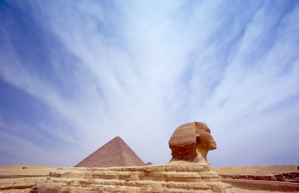 La esfinge ya era de una antigüedad poco menos que indescifrable cuando Julio César llegó a Egipto, durante miles de años esta enigmática y gigantesca representación de una mujer con cuerpo de león ha sido la representación escultórica más conocida del mundo, reproducida en grabados y cuadros y protagonista de historias y relatos. Los últimos estudios sugieren que podría haber sido originalmente la gigantesca representación de una leona, y haber recibido posteriormente los rasgos femeninos que ahora conocemos
