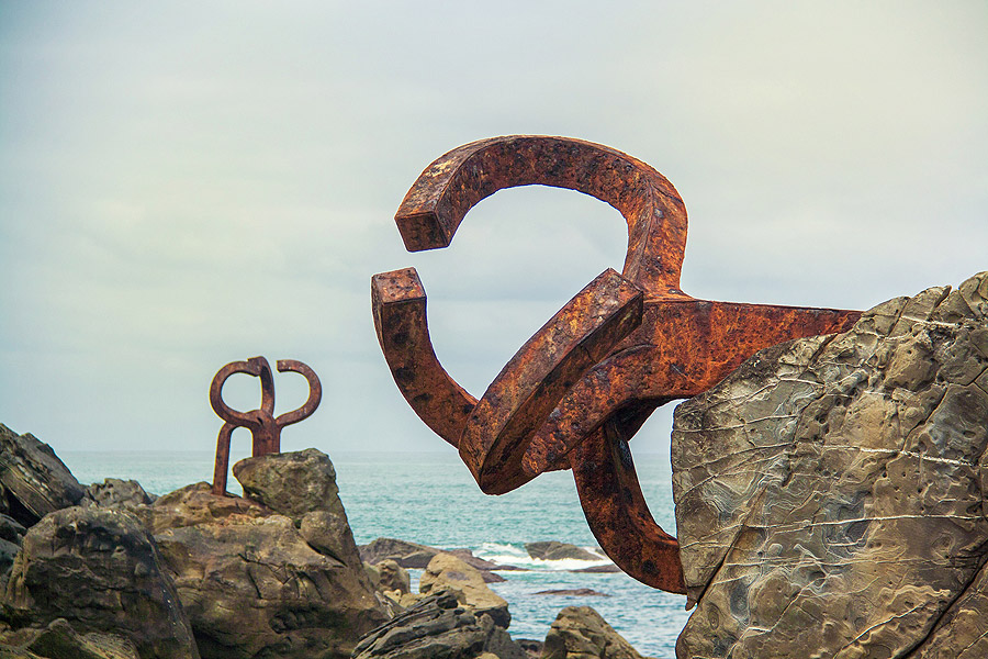 Incluso muchos observadores que no gustan especialmente del arte moderno quedan sorprendidos al ver en su entorno real -un extremo rocoso de la Playa de la Concha- el famosísimo Peine del Viendo de Chillida. Incomprensible para muchos pero integradas de forma casi milagrosas con las rocas, el agua, el viento e incluso el clima de la ciudad vasca, el conjunto tiene un extraño pero innegable magnetismo