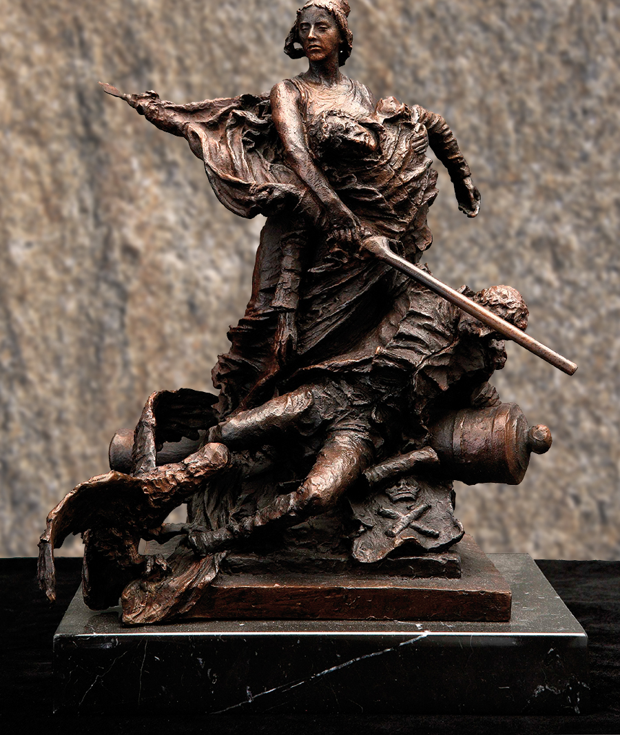 Obra del autor Aniceto Marinas, enclavada en los jardines del Alcázar de Segovia. Reproducción del monumento más importante existente en España creado en conmemoración de la Guerra de la Independencia. El conjunto monumental consta de dos relieves, y nos muestra escenas del 2 de Mayo en Madrid, culminando la obra en una alegoría de la patria acogiendo a los Héroes Daoíz y Velarde. Tirada numerada y limitada a 50 ejemplares. Medidas: Altura 55 cm. Ancho 45 cm. Fondo 36 cm. Peso 30 kg.